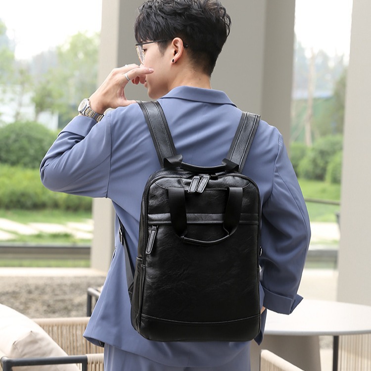 New men’s large-capacity backpack comfortable texture pu outdoor travel bag simple leisure all-match computer bag