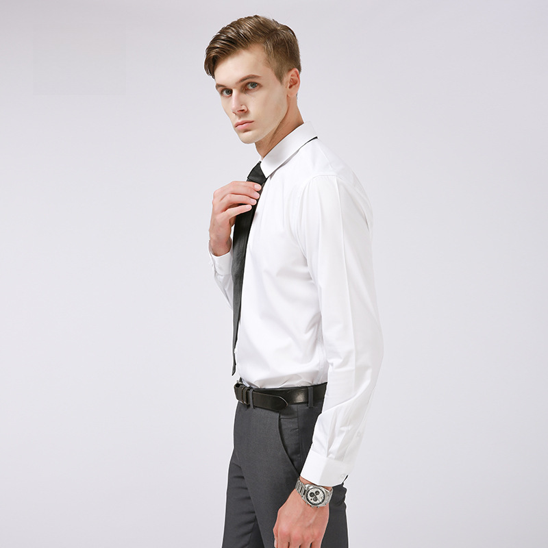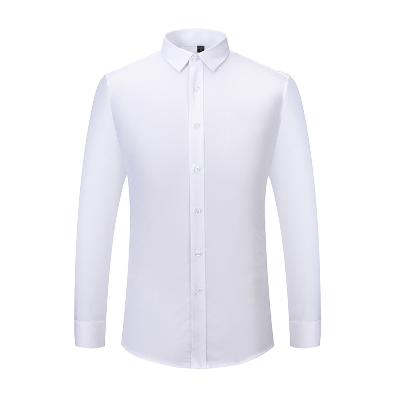 New Men’s Large Size Bamboo Fiber Long Sleeve White Shirt Men’s Non-ironing Business Casual Professional Solid Color Shirt Men’s
