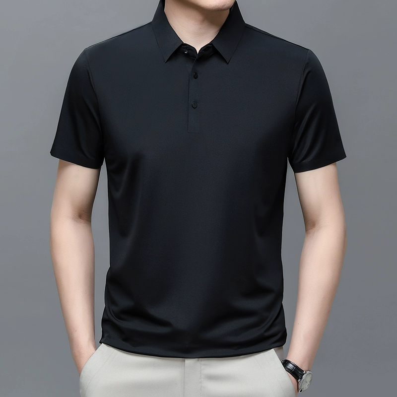 | nameOriginal | New men's short-sleeved T-shirt mulberry ice silk polo shirt summer lapel half-sleeved ice silk solid color casual T-shirt for men |