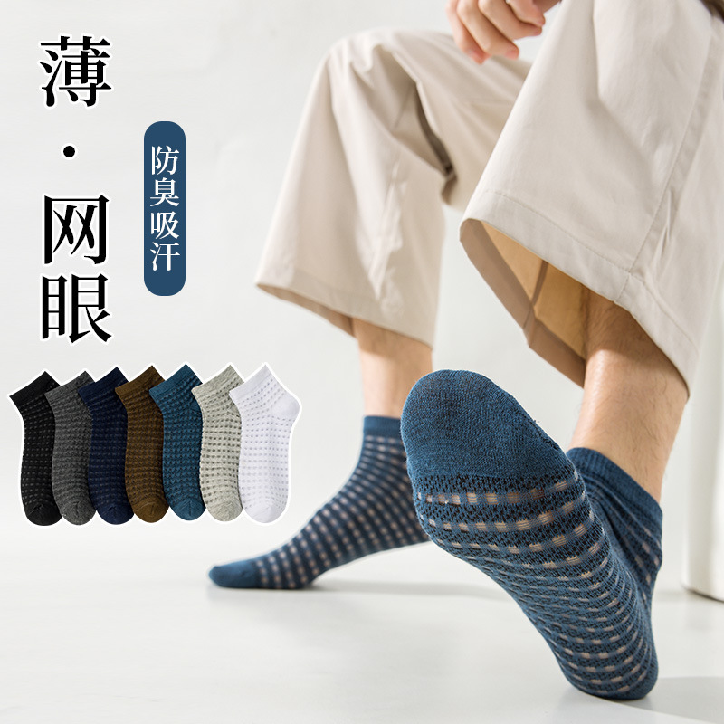 New men's short socks spring and summer breathable mesh sports socks card stockings shallow mouth wear-resistant casual tube socks