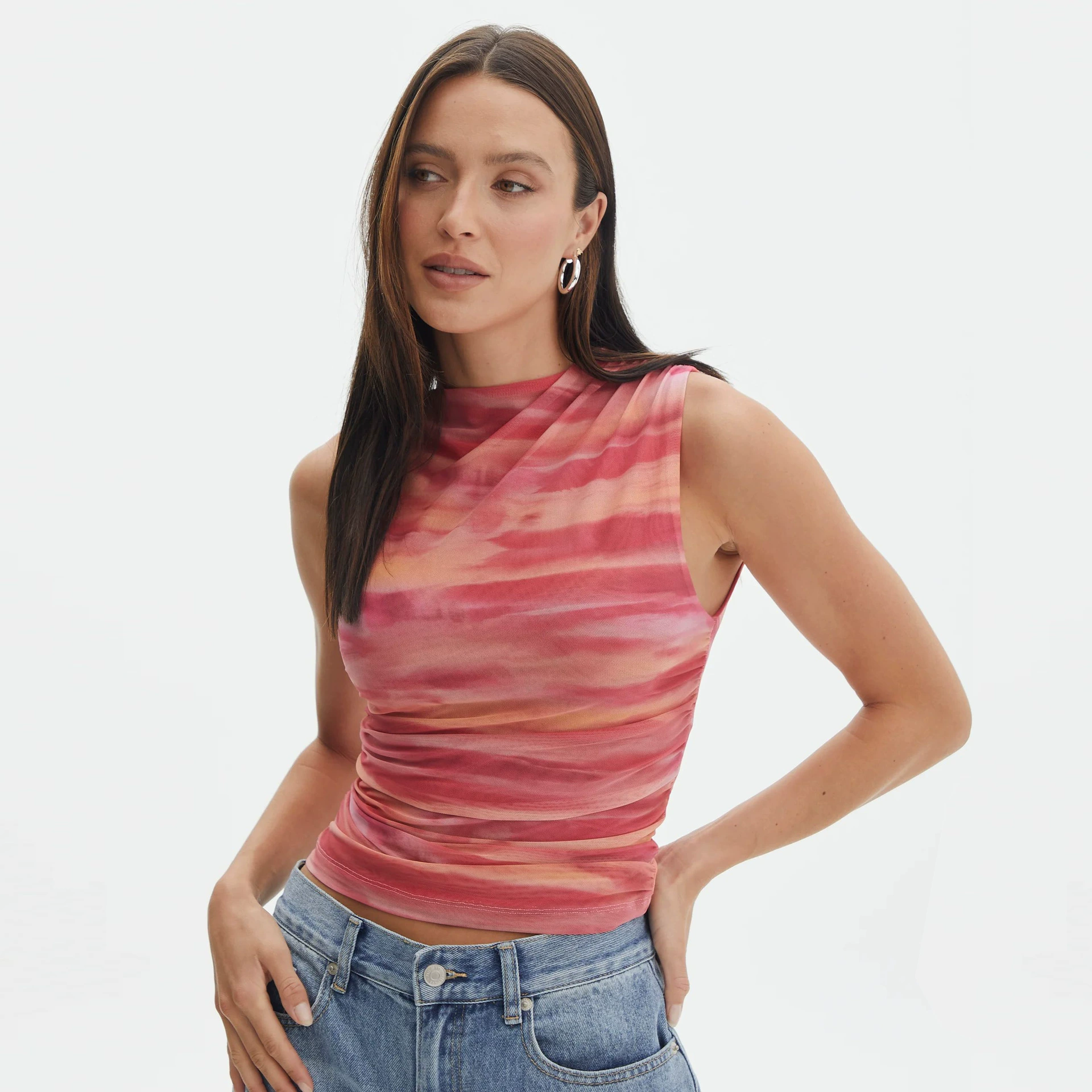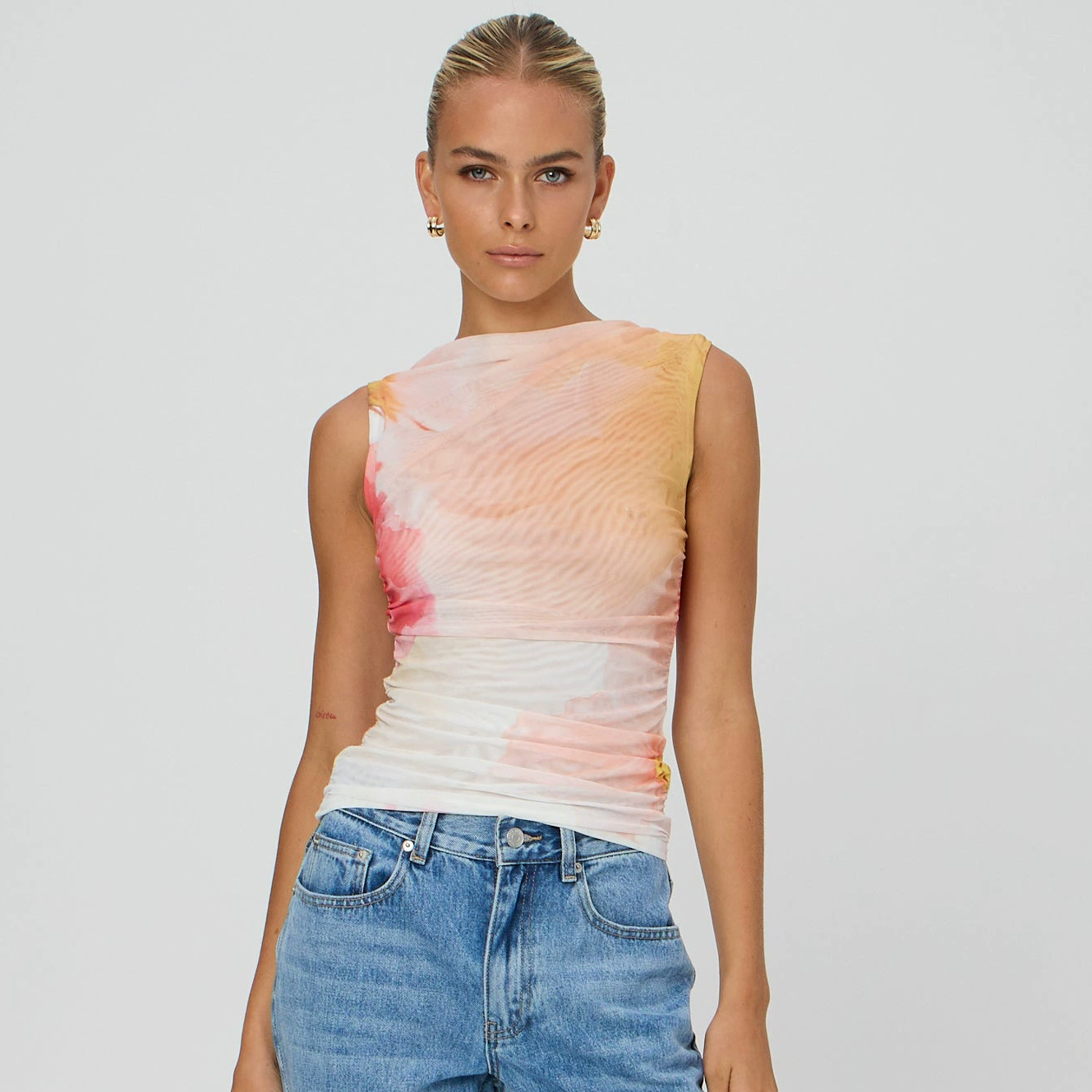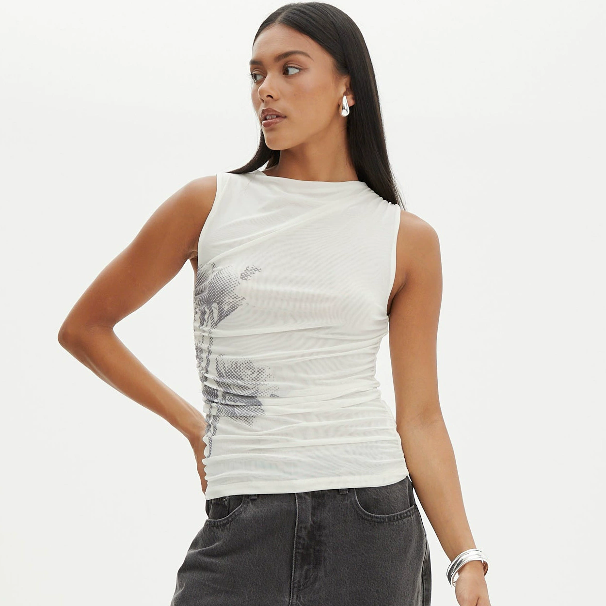 | nameOriginal | New mesh patchwork with unique pleated vest and slim fit top |