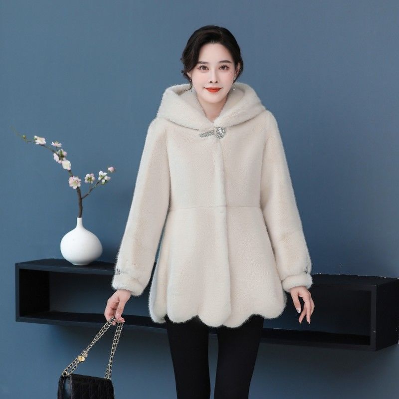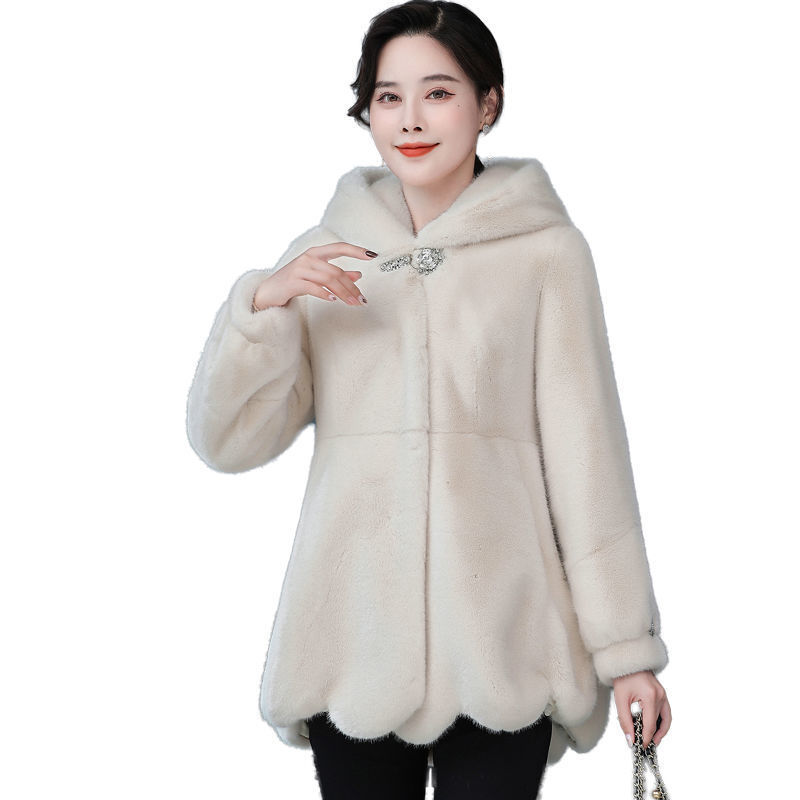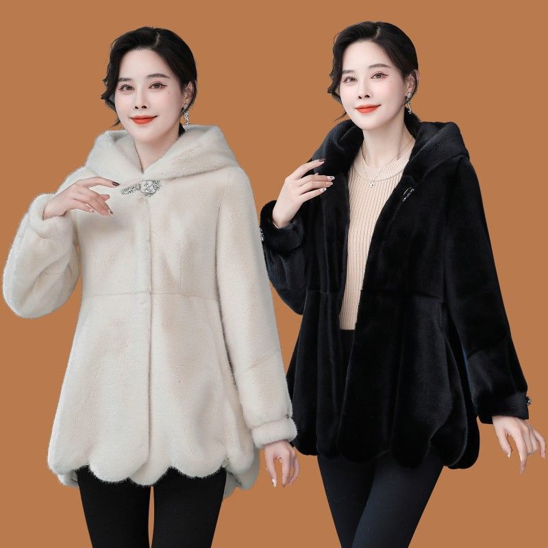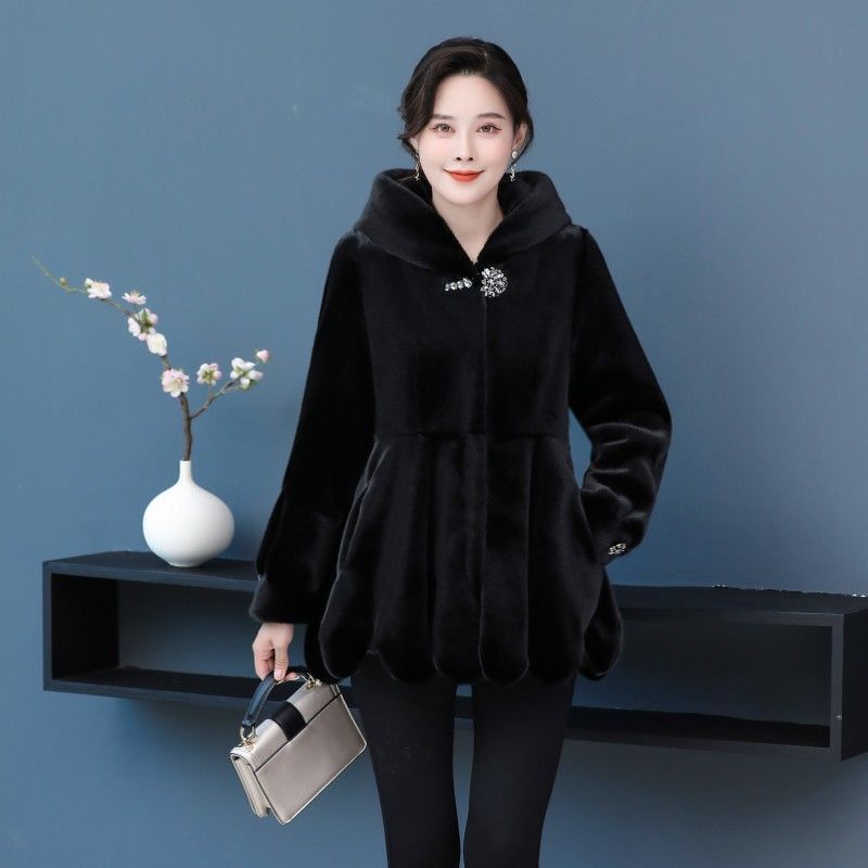 New middle-aged mom fur coat women’s hooded thickened faux mink velvet coat fur integrated warm top