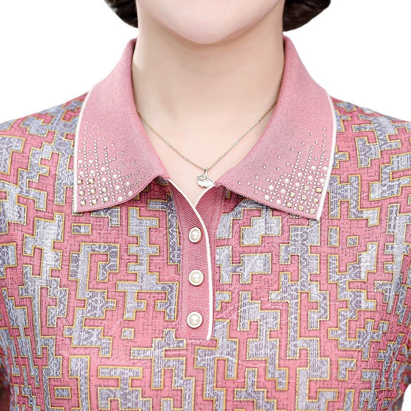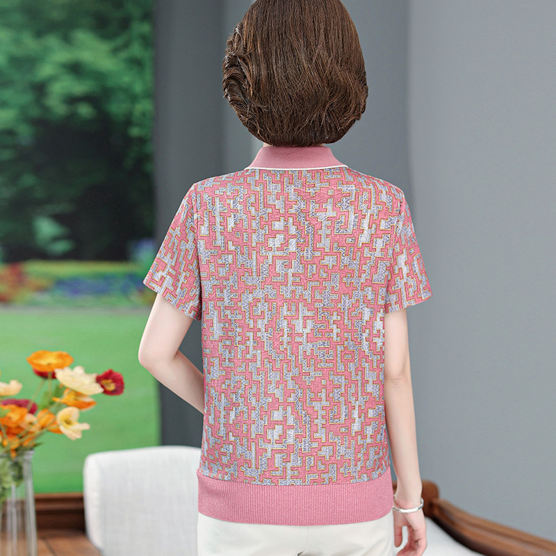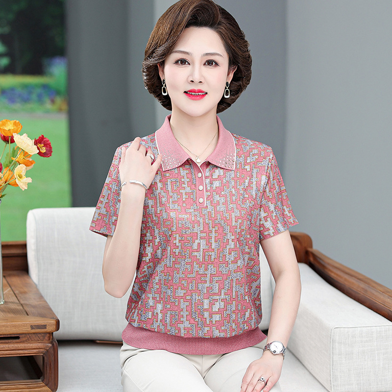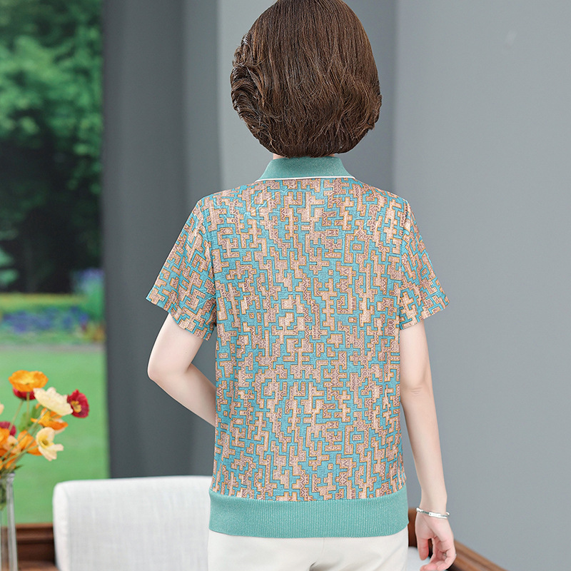 New Middle-aged Mother Summer Wear Thin Shirt Short-sleeved Western Style Spring and Summer T-shirt Top for Middle-aged and Elderly 50-year-old Women