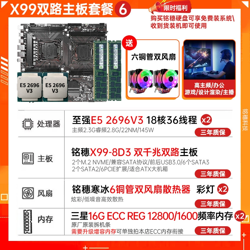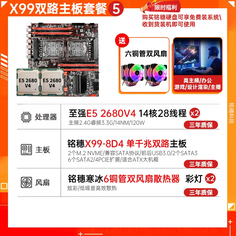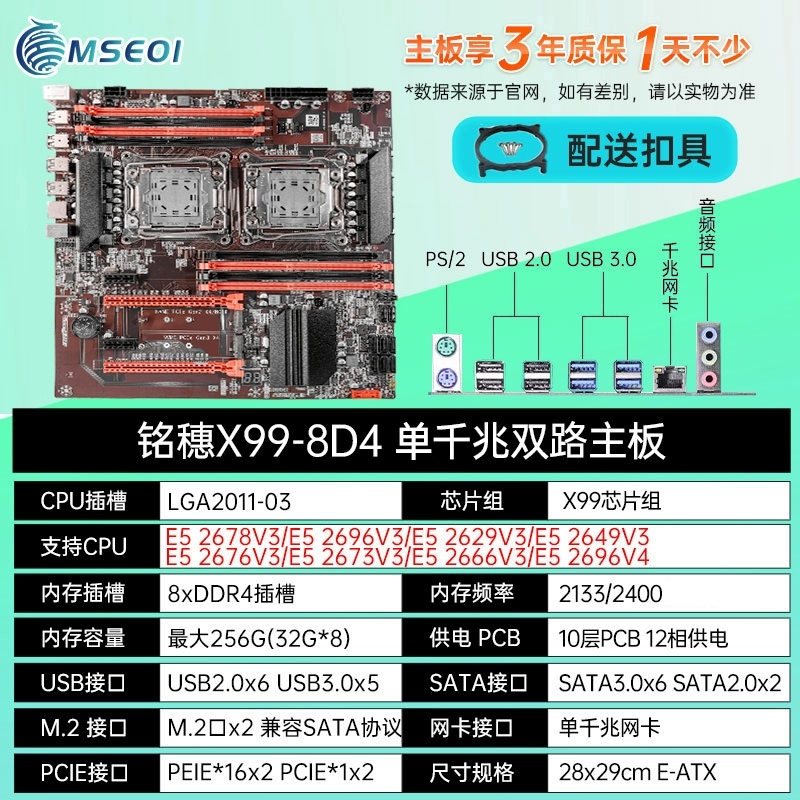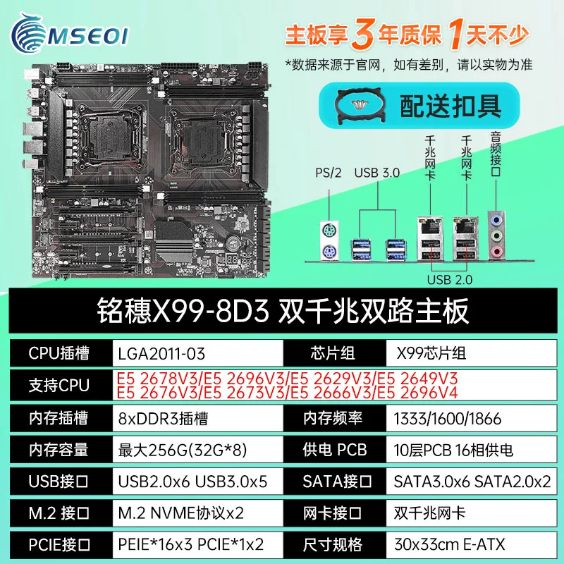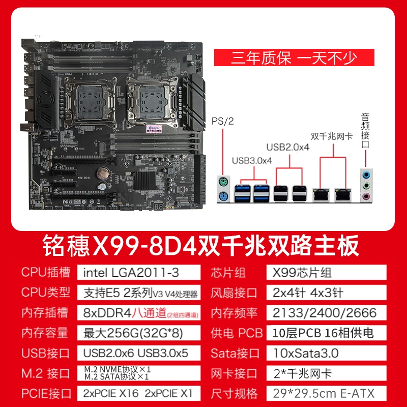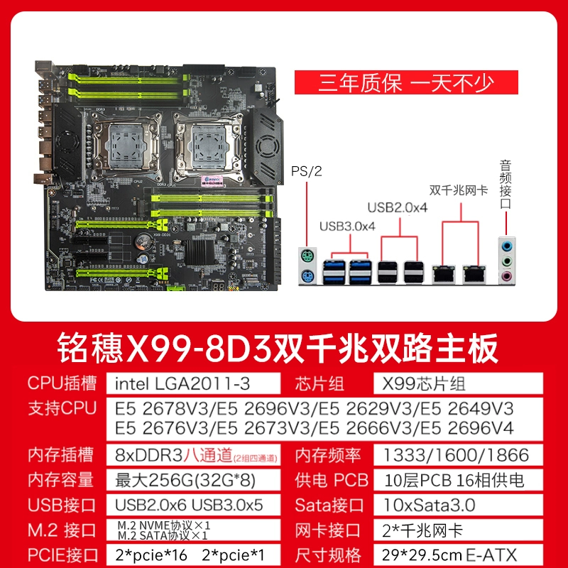 New model! Mingsui X99 Dual luxury dual road E-ATX motherboard dual-network card E5 2696v4 2011-3 motherboard