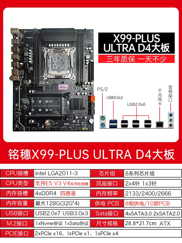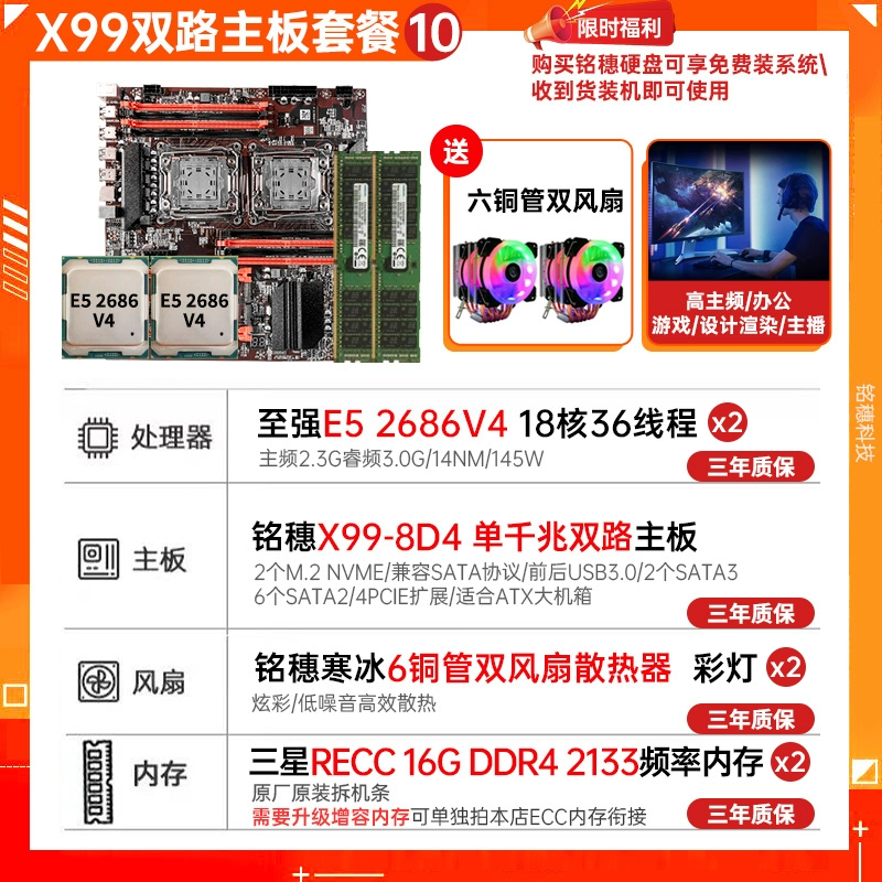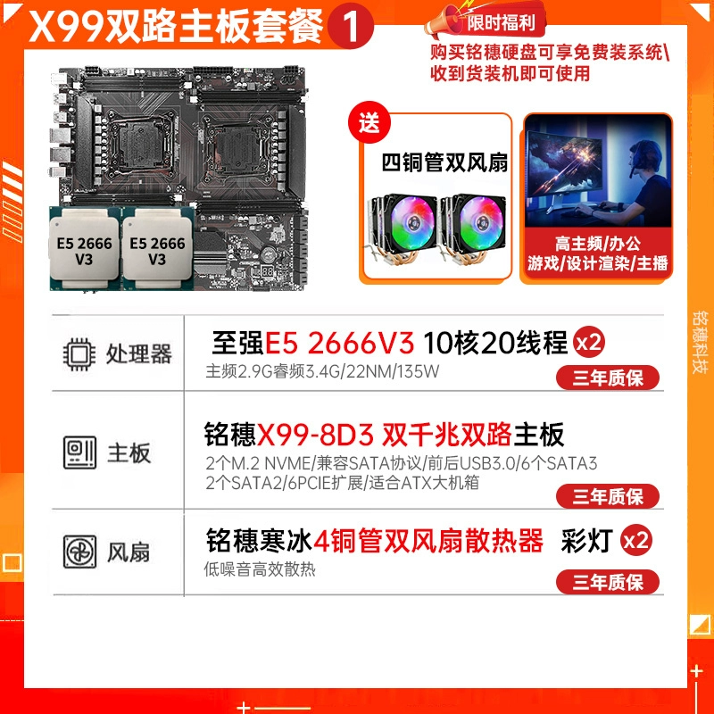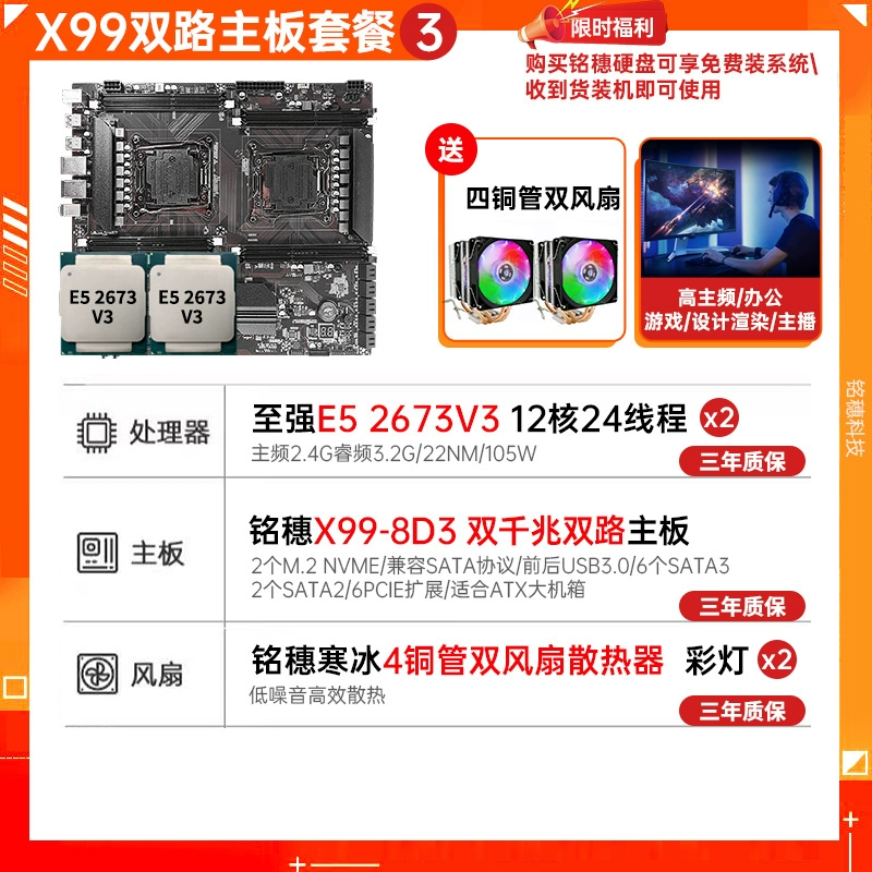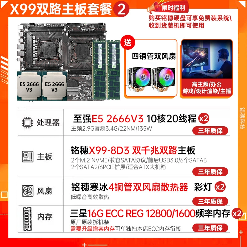 New model! Mingsui X99 Dual luxury dual road E-ATX motherboard dual-network card E5 2696v4 2011-3 motherboard