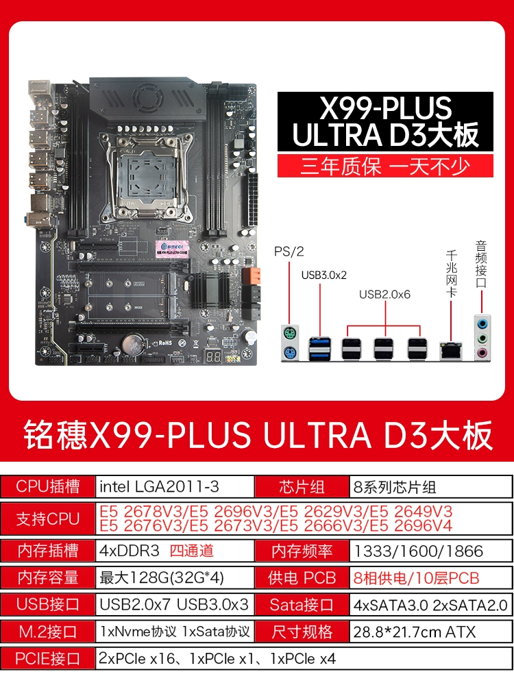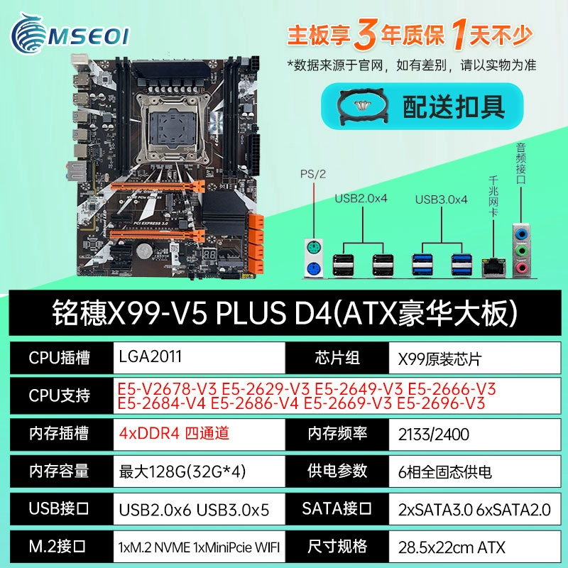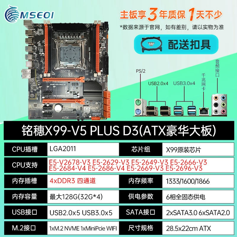 New! Mingsui X99 dual luxury dual-way E-ATX motherboard dual network card e5 2696v4 2011-3 motherboard