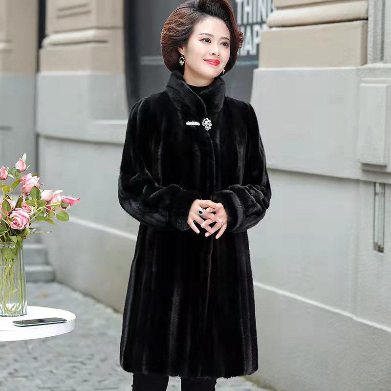 New Mink Velvet Women's Long Coat Fur Coat Middle-aged and Elderly Mink Velvet Coat