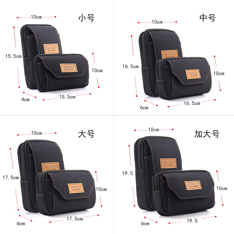 New Mobile Phone Bag Men’s Belt Waist Bag Mobile Phone Case Multi-functional Wear-resistant Canvas 7-inch Mobile Phone Hanging Bag Small Bag