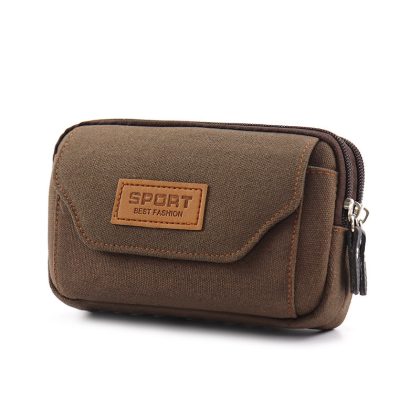 New Mobile Phone Bag Men’s Belt Waist Bag Mobile Phone Case Multi-functional Wear-resistant Canvas 7-inch Mobile Phone Hanging Bag Small Bag