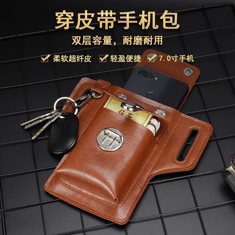 New Mobile Phone Bag Men’s Multifunctional Vertical Wearing Belt Waist Bag Mobile Phone Case Large Screen Mobile Phone Bag Site Wear-resistant Waterproof