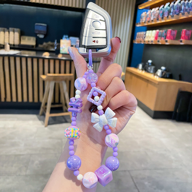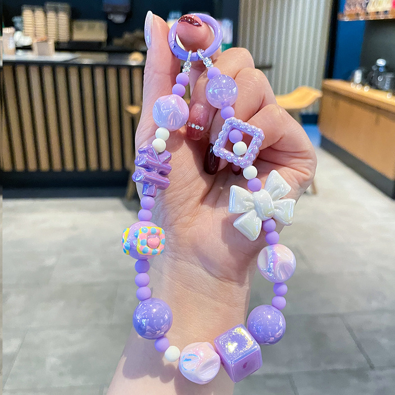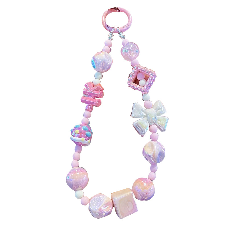| nameOriginal | New mobile phone chain dopamine color crystal bead chain keychain cute cartoon bag chain flash diamond wrist mobile phone lanyard |