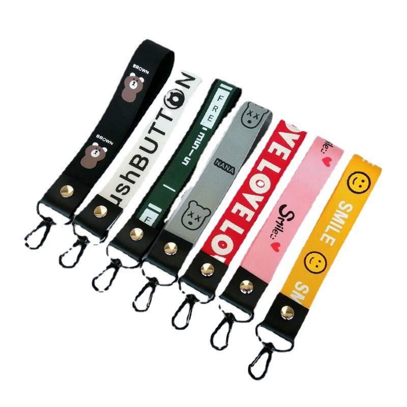 | nameOriginal | New monochrome imitation nylon wide rope polyester wrist rope silk screen logo cartoon mobile phone lanyard accessories lanyard factory |