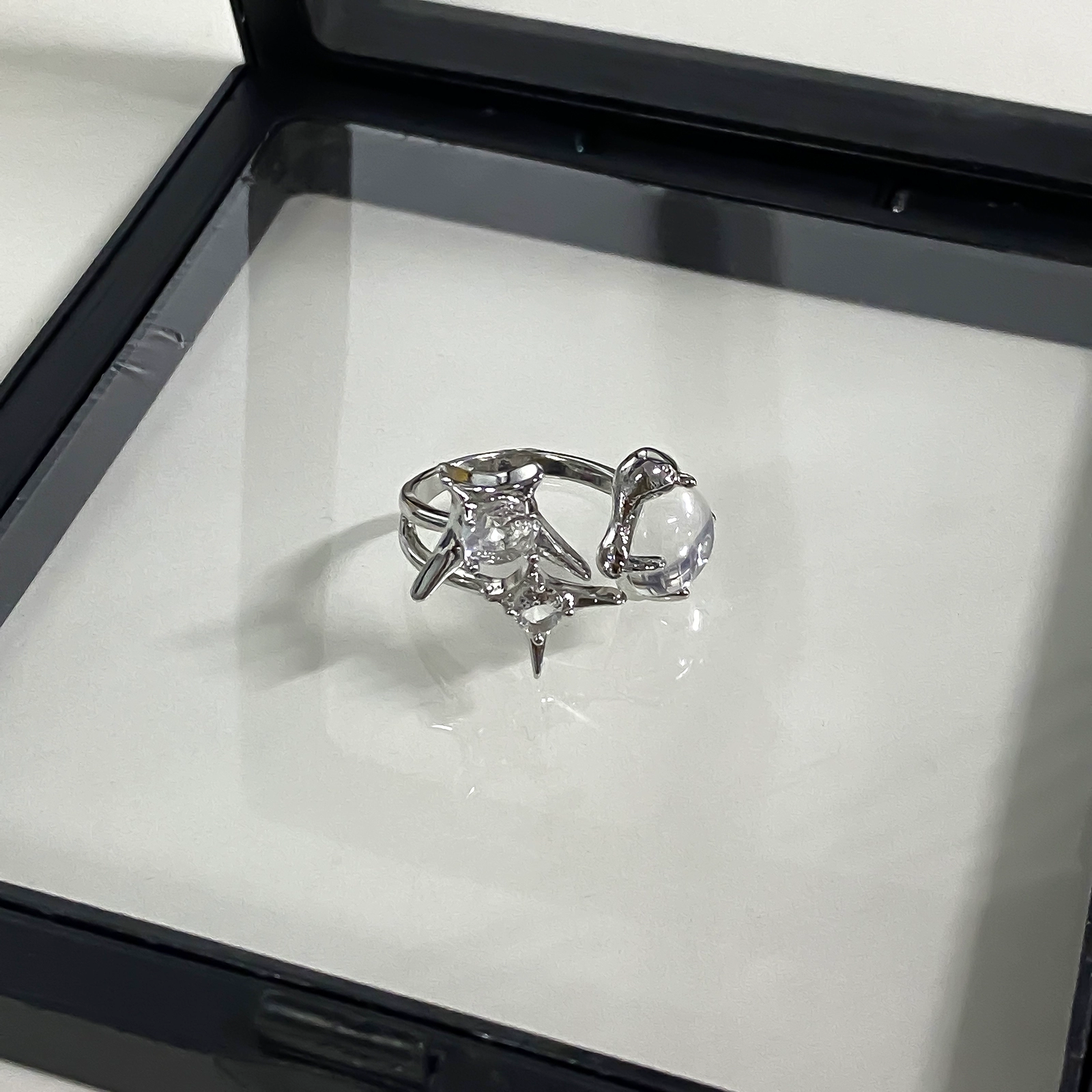 New moonstone star ring women’s design niche personality hot girl style open ring
