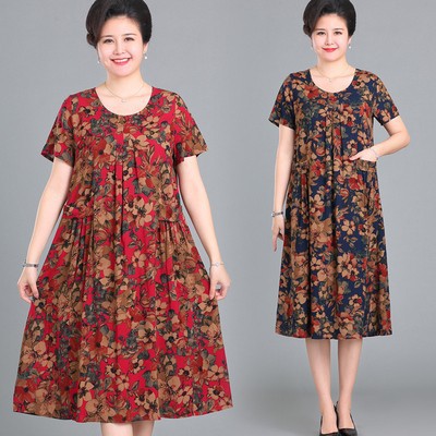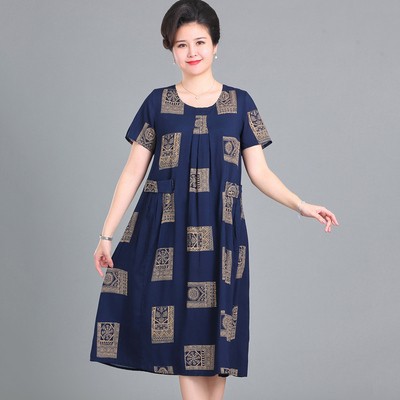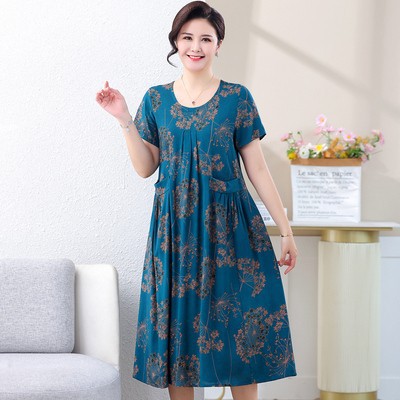 New Mother Suit Summer Cotton Silk Dress Loose Belly Covering Middle-aged and Elderly Plus Large Size Women's Dress