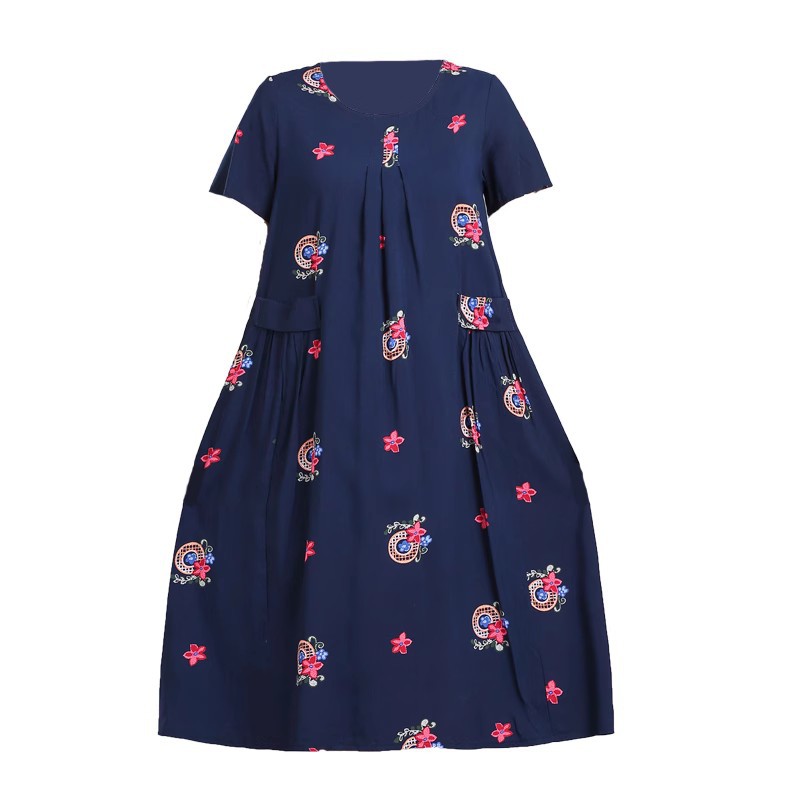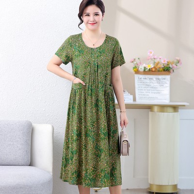 New Mother Suit Summer Cotton Silk Dress Loose Belly Covering Middle-aged and Elderly Plus Large Size Women’s Dress