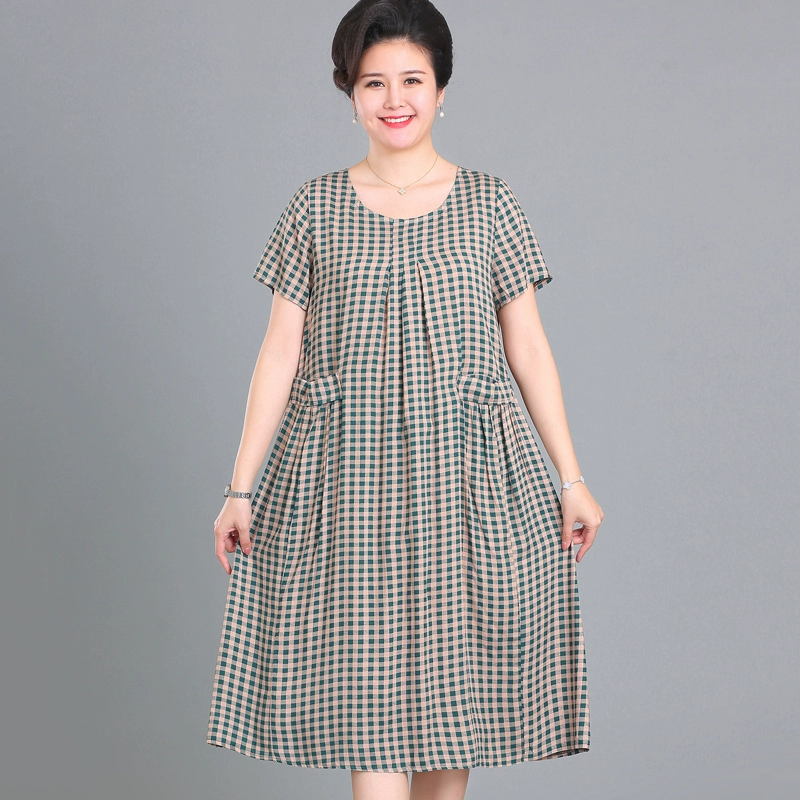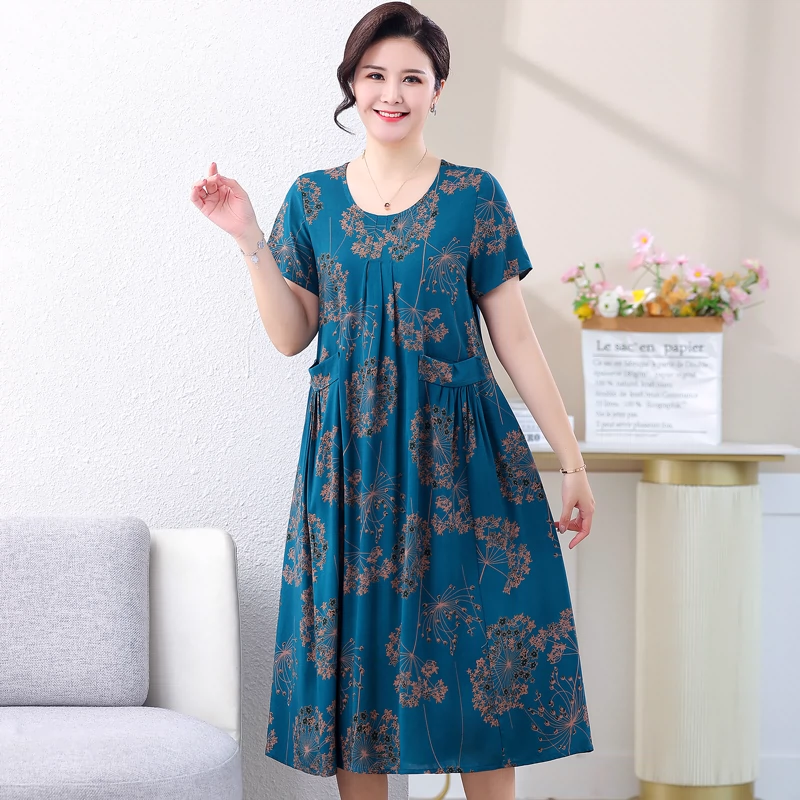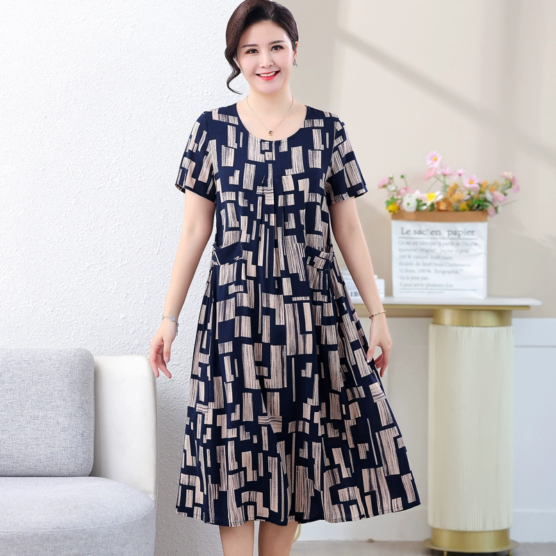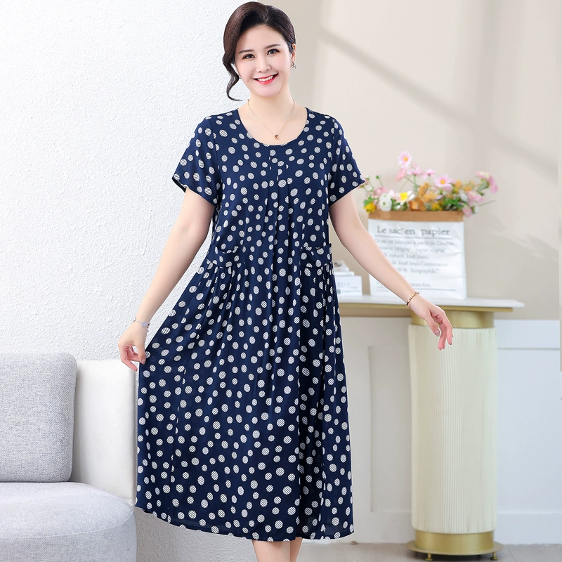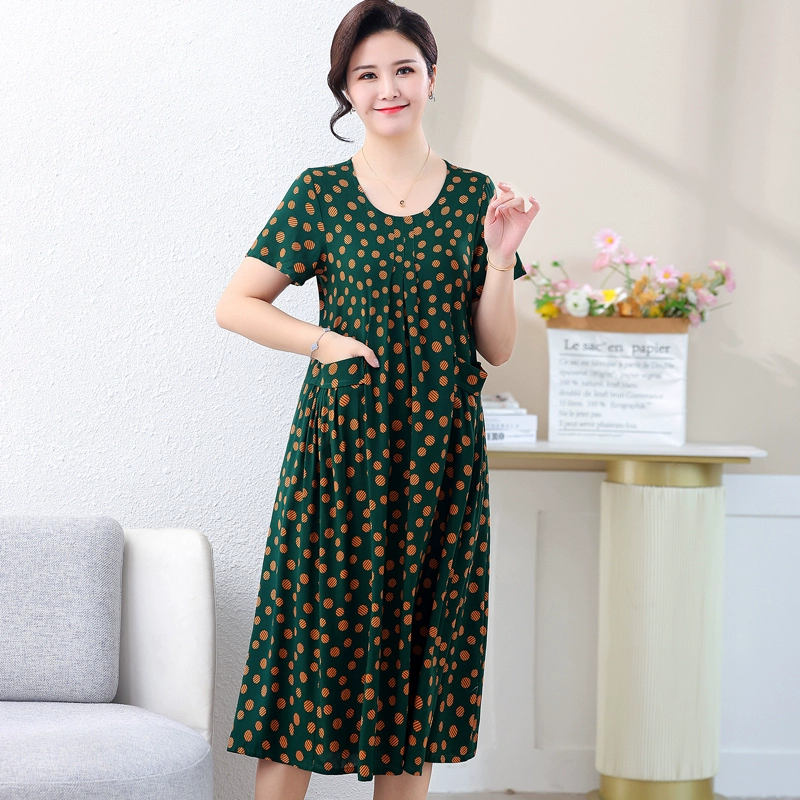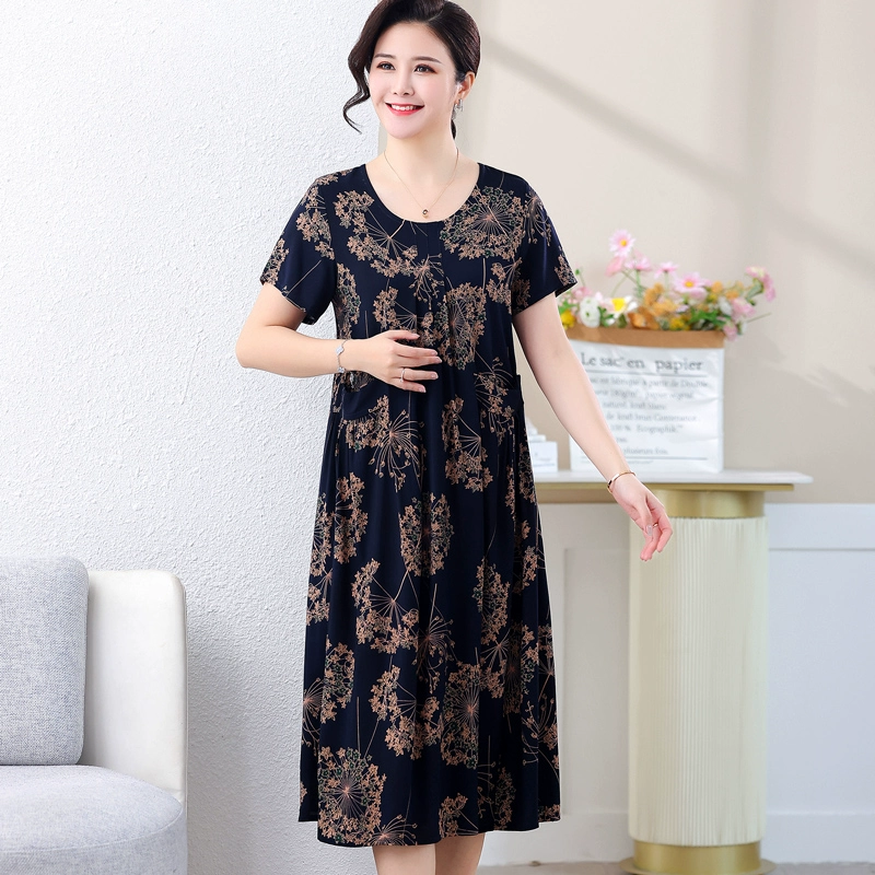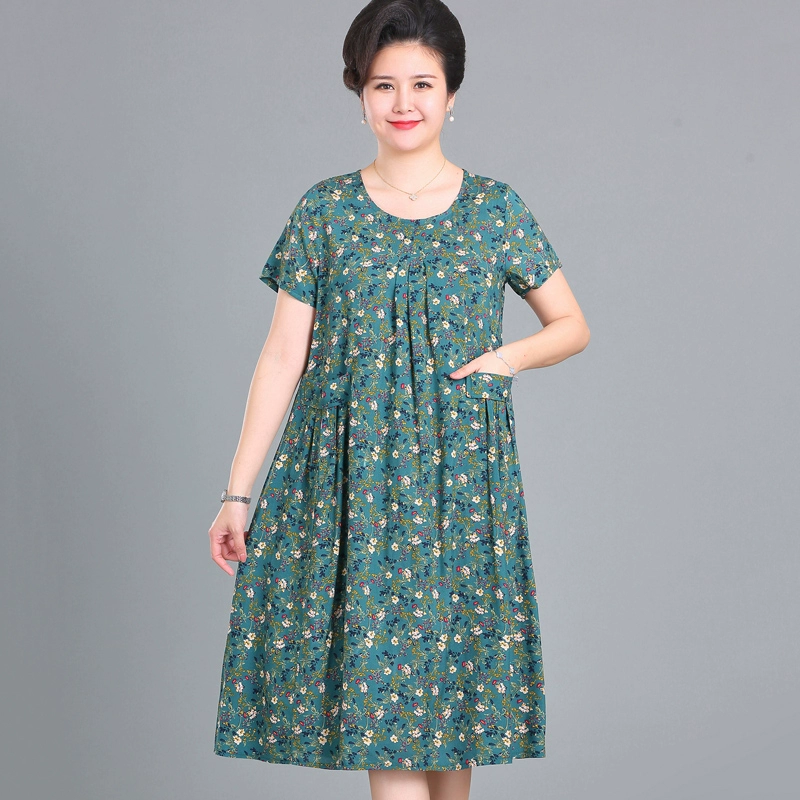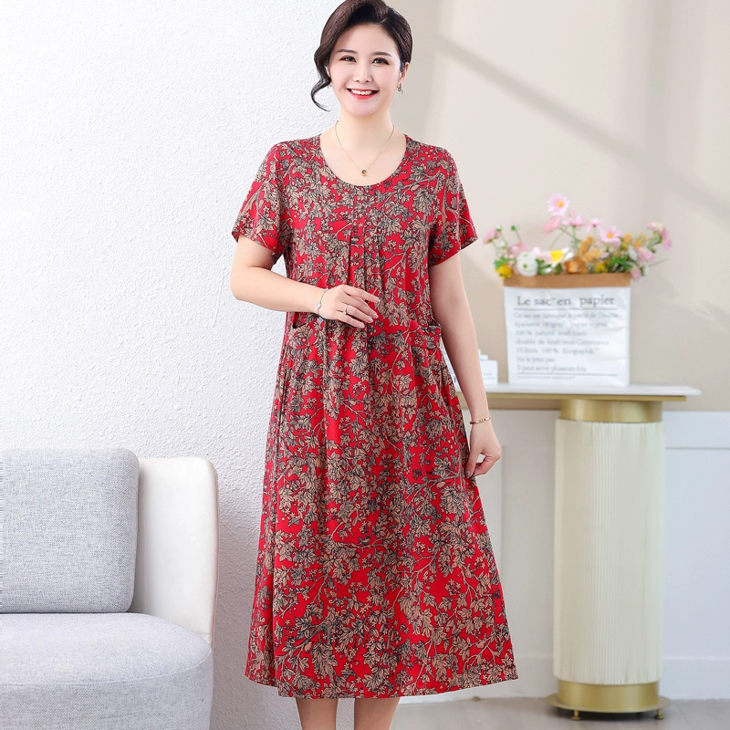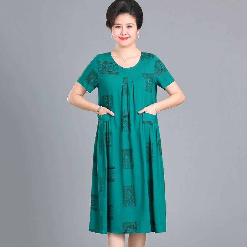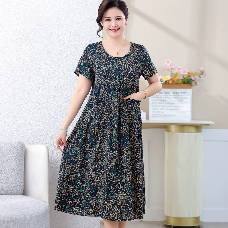| nameOriginal | New mother's summer cotton silk dress loose belly-covering middle-aged and elderly plus size women's colorful skirt |