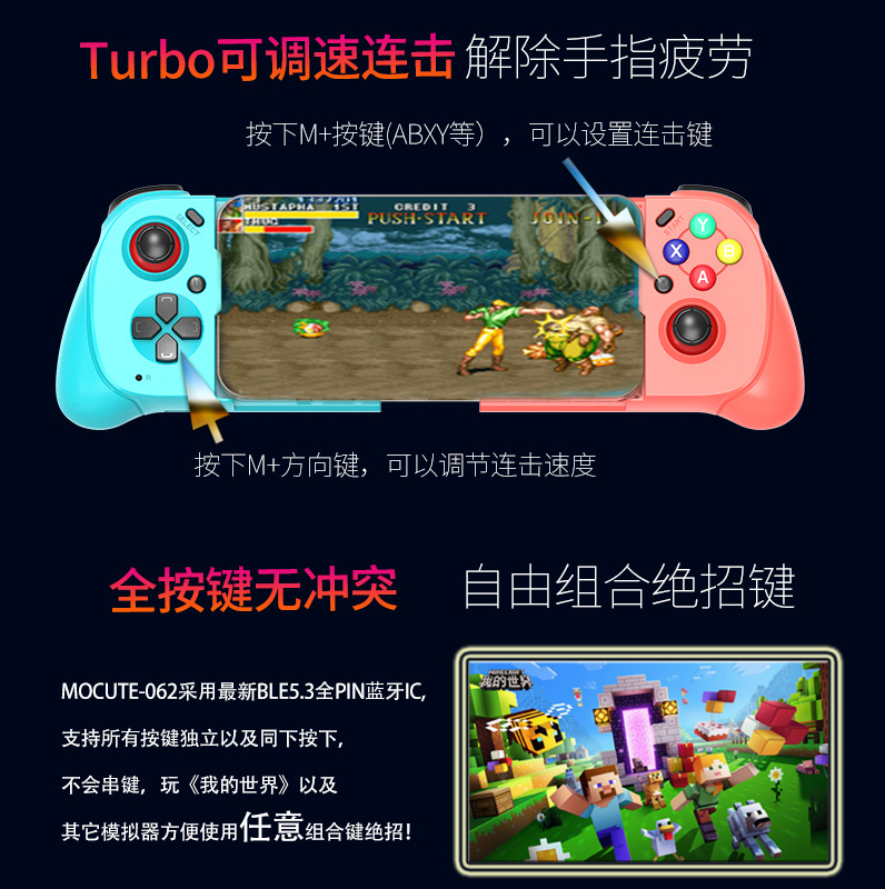 | nameOriginal | New moute magic carter 062 stretch bluetooth gamepad double rocker hall trigger hand travel NS handle |