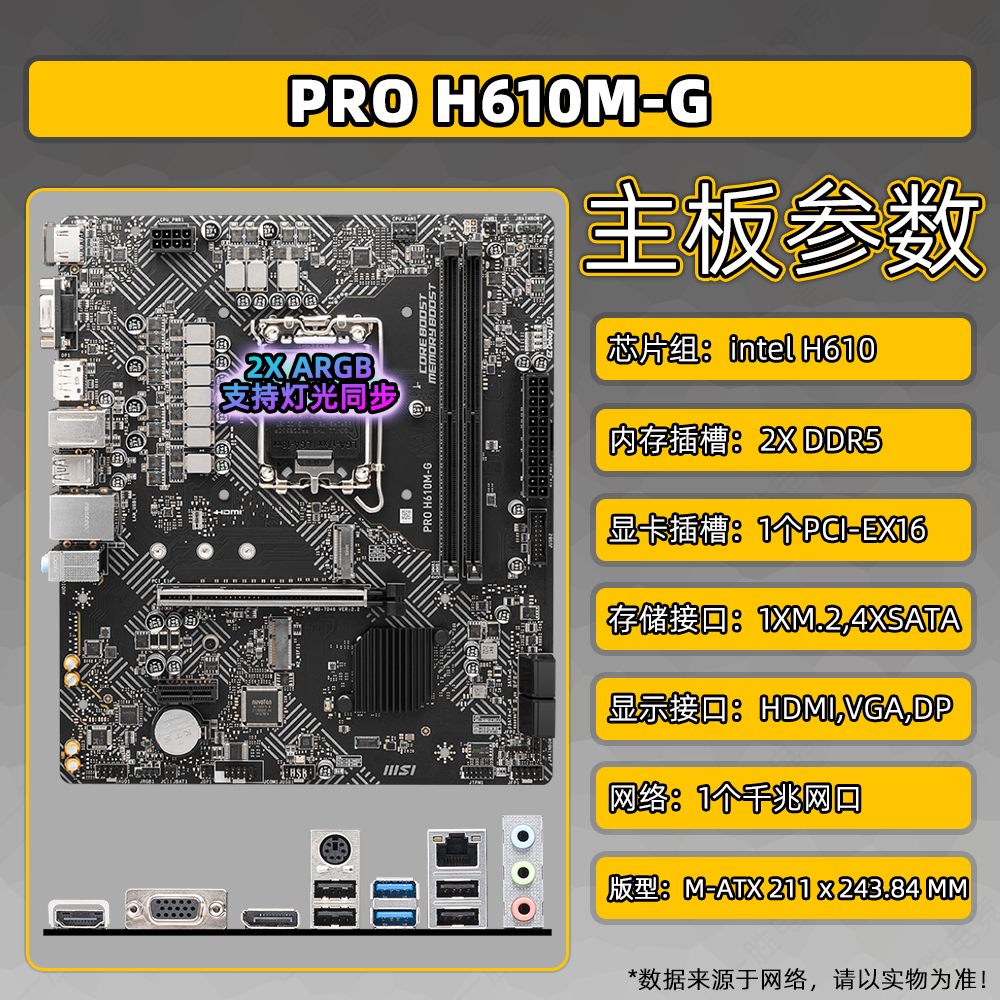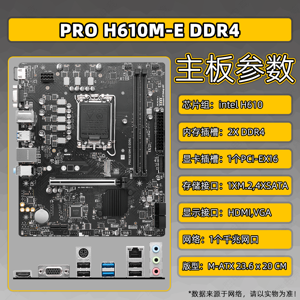 | nameOriginal | New MSI h610m e motherboard desktop computer motherboard LGA1700 supports 12100/12400F |