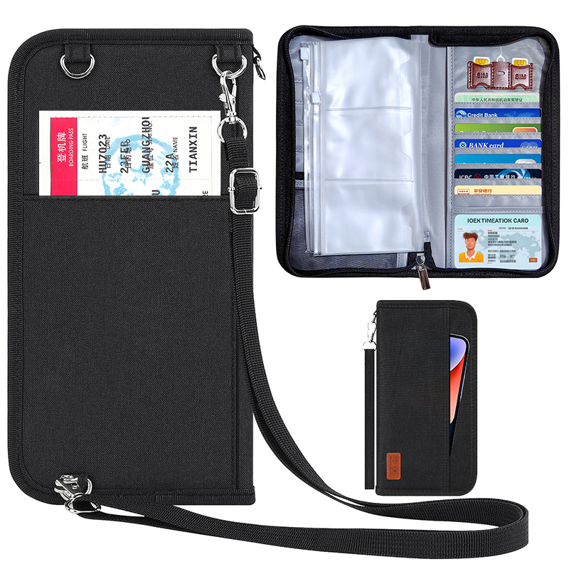 New Multi-function ID Bag Hanging Neck Passport Storage Bag RFID Multi-card Card Bag Portable Zipper Travel Wallet