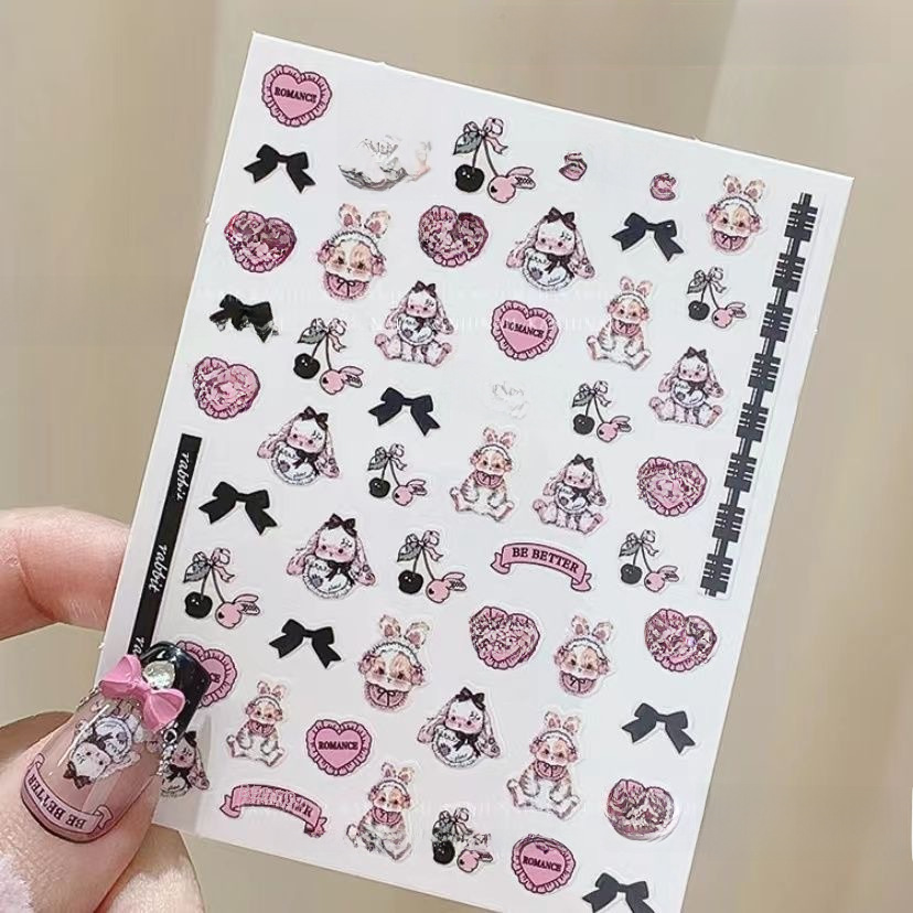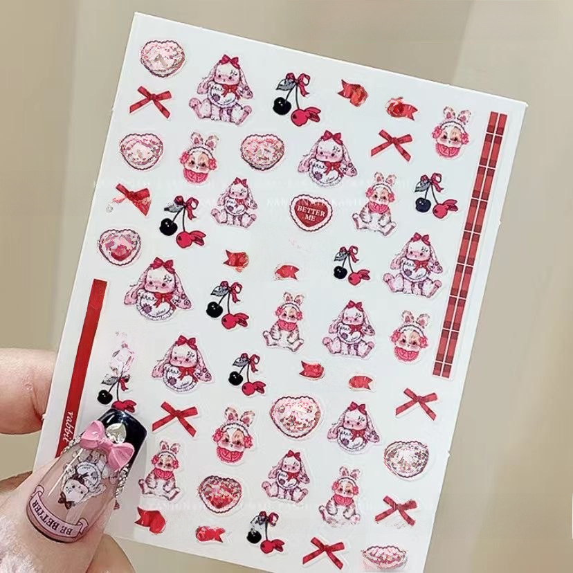New Nail Art Lolita Rabbit Sticker Bow Cherry Rabbit Can Love Small Pattern with Back Adhesive Nail Sticker