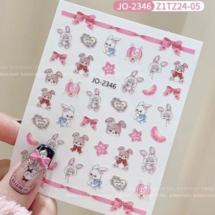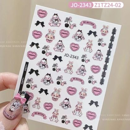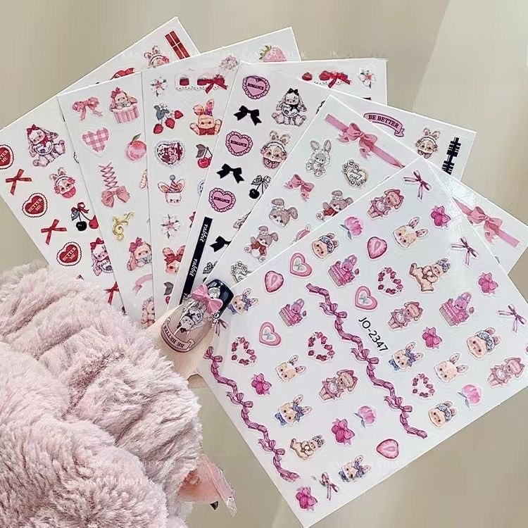 New Nail Art Lolita Rabbit Sticker Bow Cherry Rabbit Can Love Small Pattern with Back Adhesive Nail Sticker