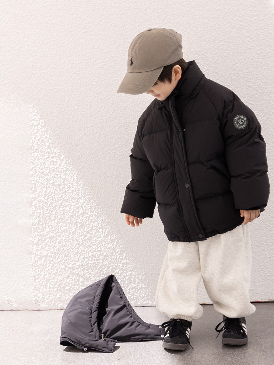 | nameOriginal | New national standard Aimo baby children's 90 white duck down warm bread coat boys and girls handsome labeling hooded down jacket |