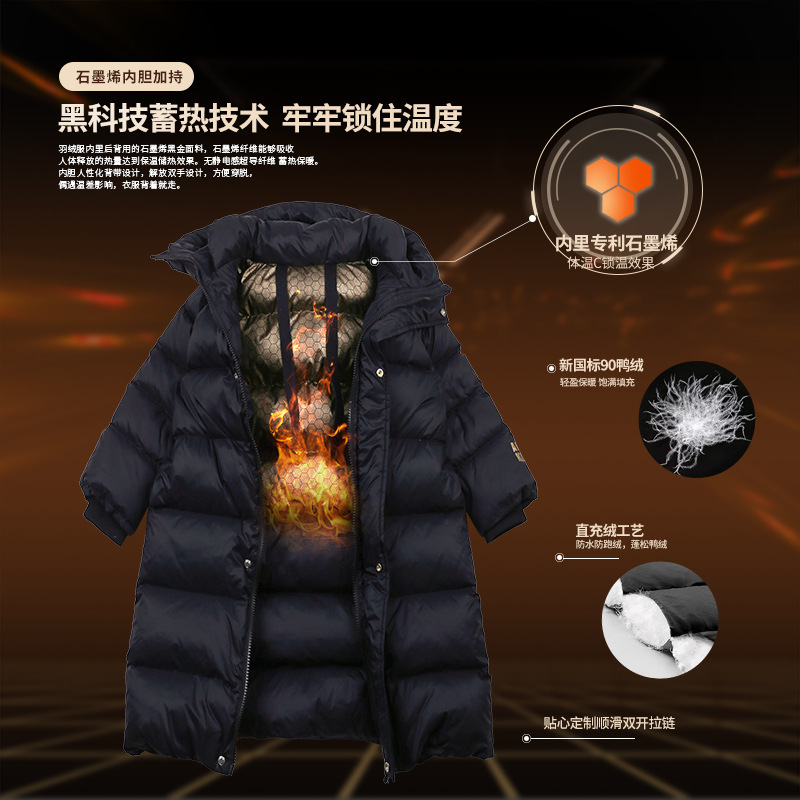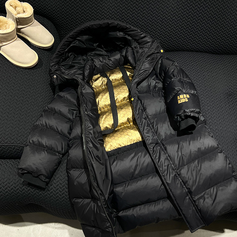 | nameOriginal | New national standard Aimo Beibei children's mid-length heat storage black gold down jacket boys and girls 90 white duck down warm jacket |
