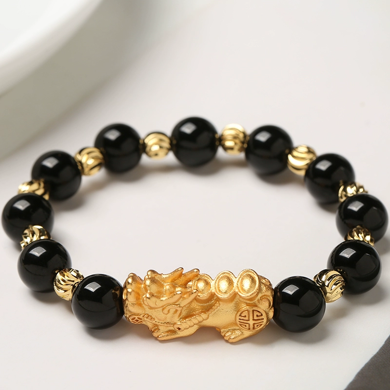 | nameOriginal | New natural pink white blue green cat's eye sand gold Pixiu bracelet black agate bracelet female birthday gift jewelry |