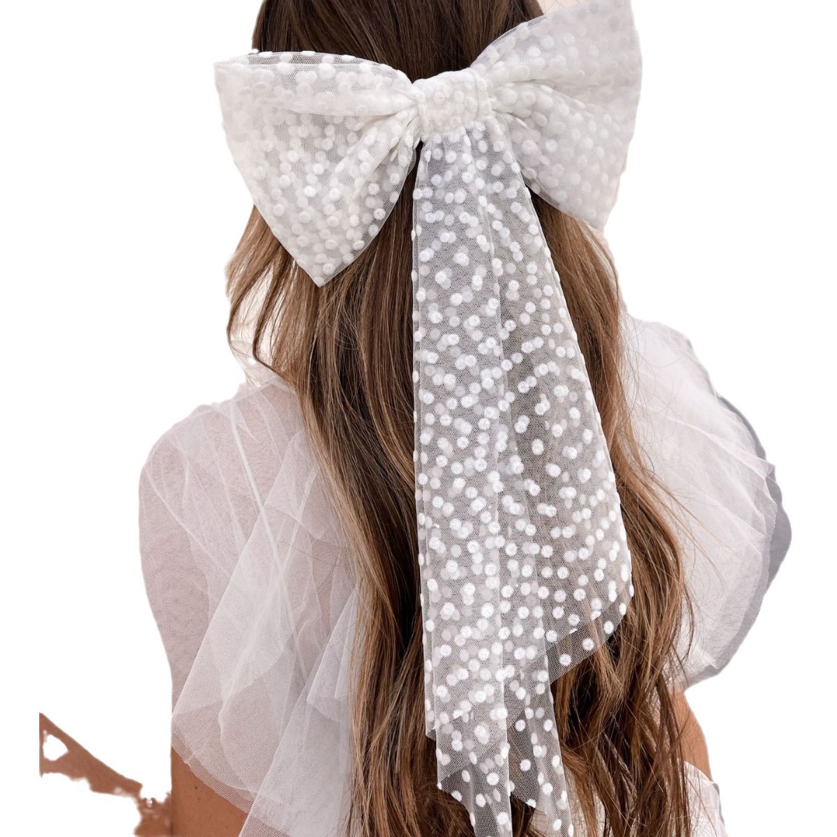 | nameOriginal | New Net red super fairy yarn ribbon Pearl bow wedding wedding dress temperament girl top clip hairpin hair accessories |
