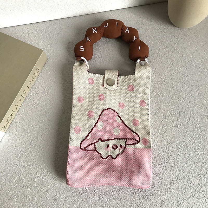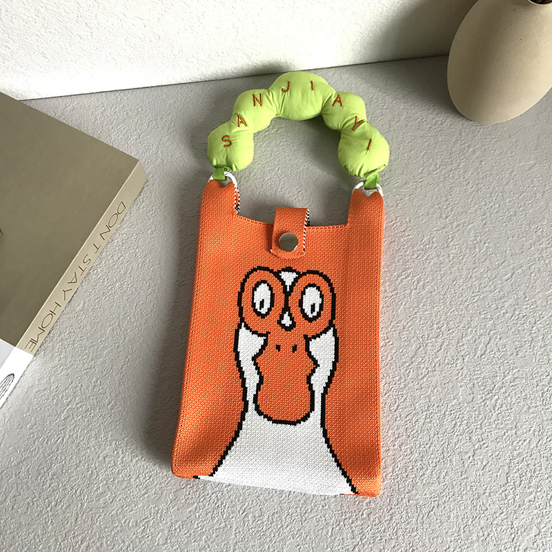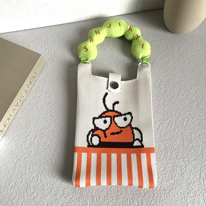 New Niche Design Cute Cartoon Mini Knitted Mobile Phone Bag All-match Small Portable Commuter Crossbody Small Square Bag