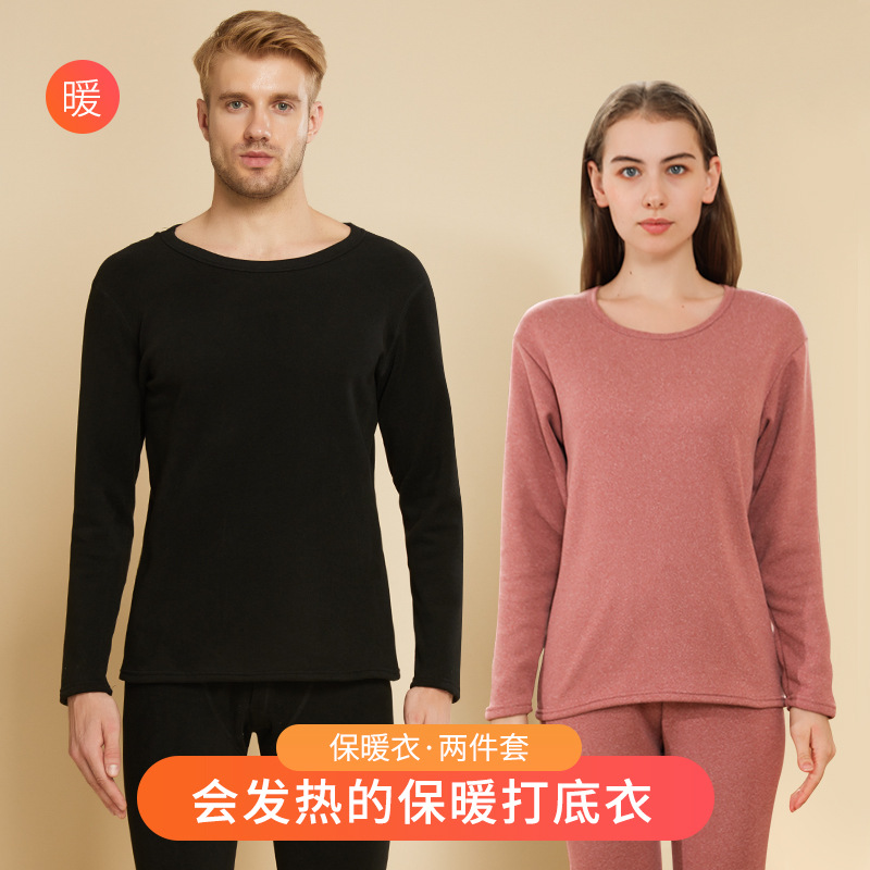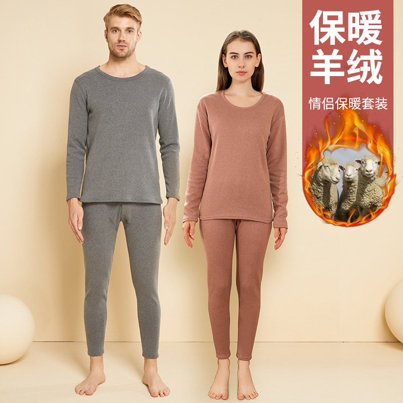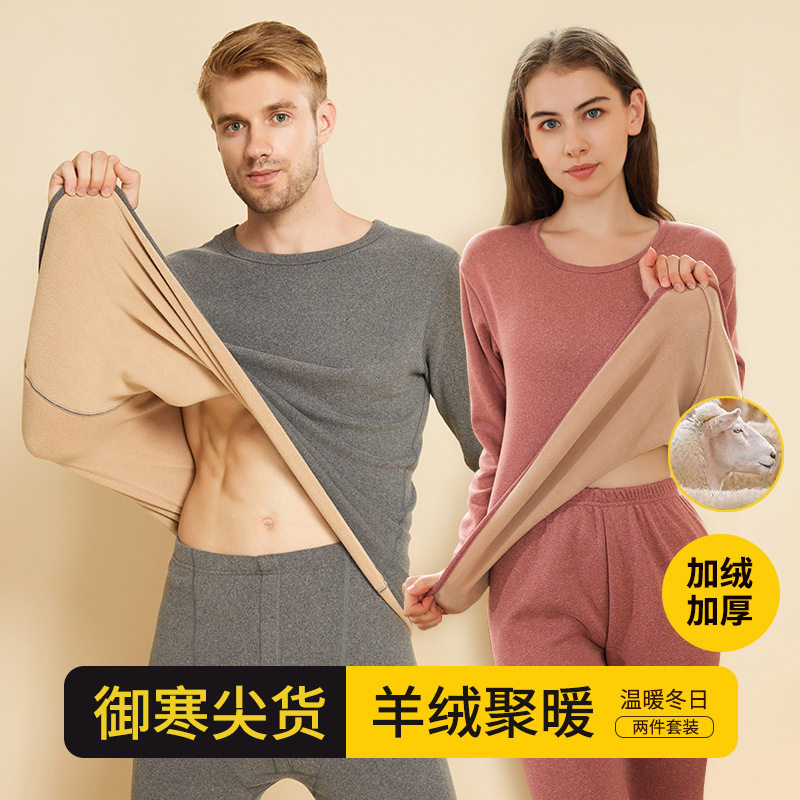 New One Lamb Velvet Thermal Underwear Set Men's Plus Collar Heating Round Neck Thermal Clothes Women's Autumn Clothes and Pants