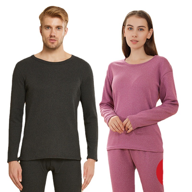 New One Lamb Velvet Thermal Underwear Set Men’s Plus Collar Heating Round Neck Thermal Clothes Women’s Autumn Clothes and Pants