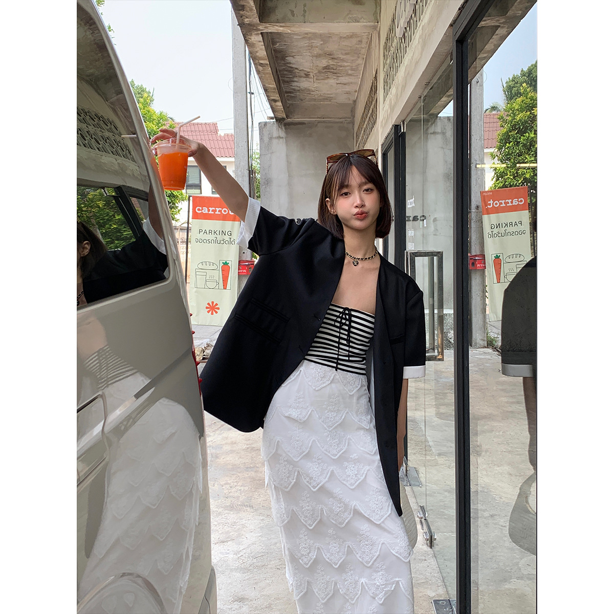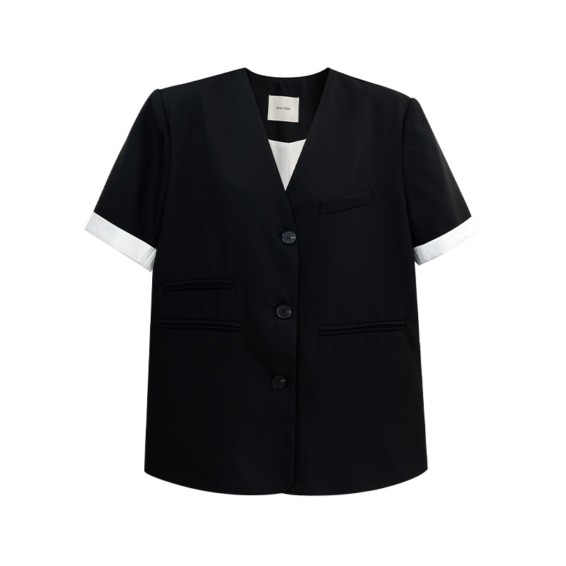 | nameOriginal | NEW OPEN Suit Women's Summer Casual Korean Short-sleeved Loose Slimming V-neck Black Jacket 82169 |