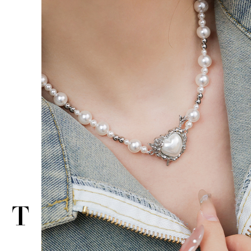 | nameOriginal | New original baroque pearl necklace silver personalized mix and match heart-shaped pendant niche beaded trendy necklace for women |