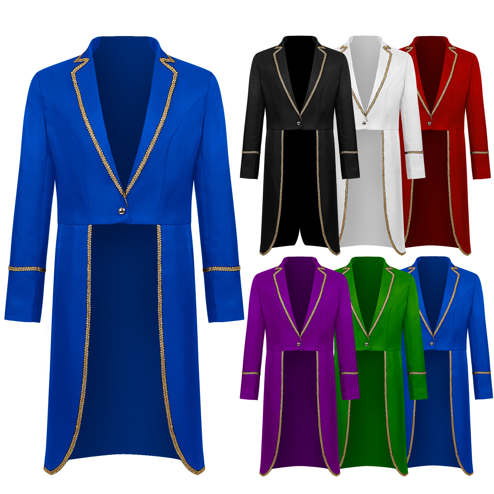 | nameOriginal | New Original European and American new Halloween tuxedo medieval retro mid-length punk golden edge coat |