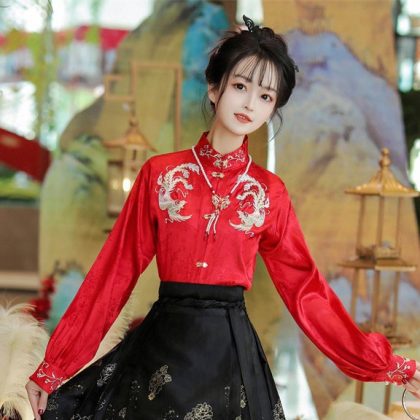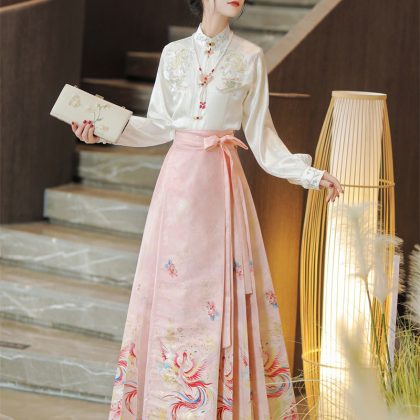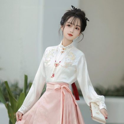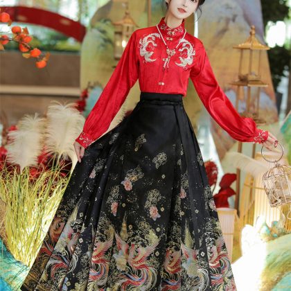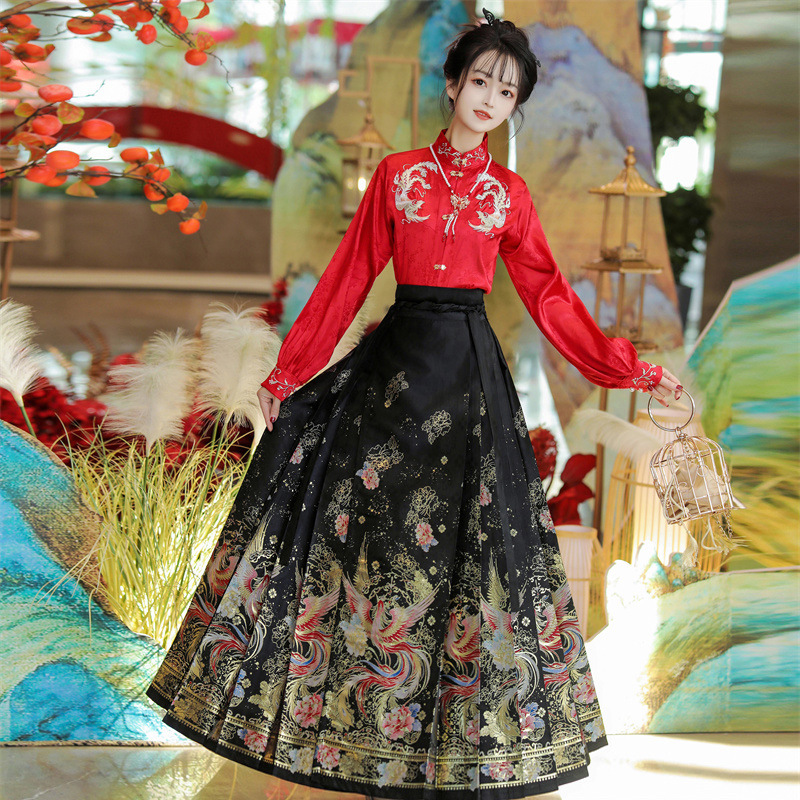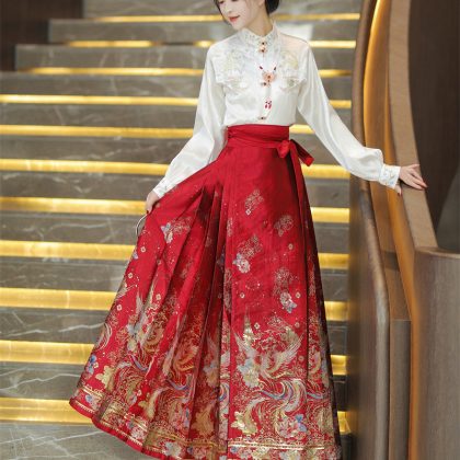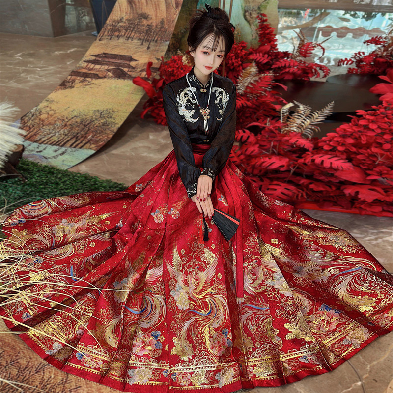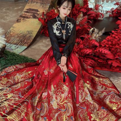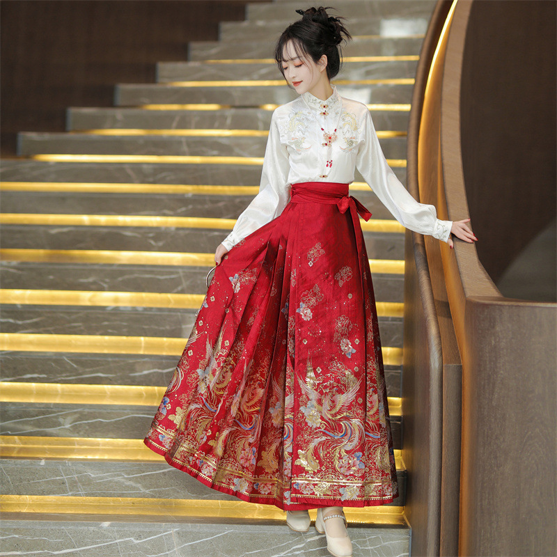New Original Hanfu Women’s Spring and Summer Weaving Gold Imitation Makeup Flower Horse Face Skirt Full Set of Daily Guofeng Elements Toast Dress