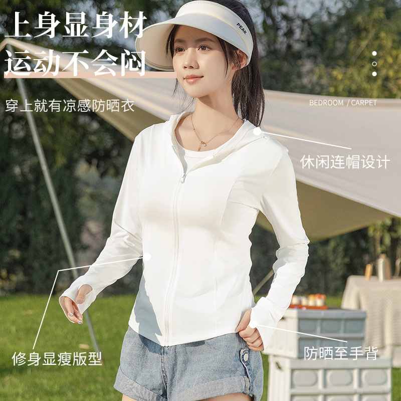 New Original Yarn Hooded Sunscreen Clothing Women's Summer Ice Silk UV Protection UPF Slim-fit Yoga Clothing Sports Jacket