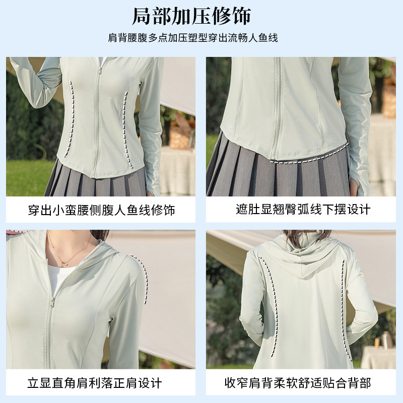 New Original Yarn Hooded Sunscreen Clothing Women’s Summer Ice Silk UV Protection UPF Slim-fit Yoga Clothing Sports Jacket