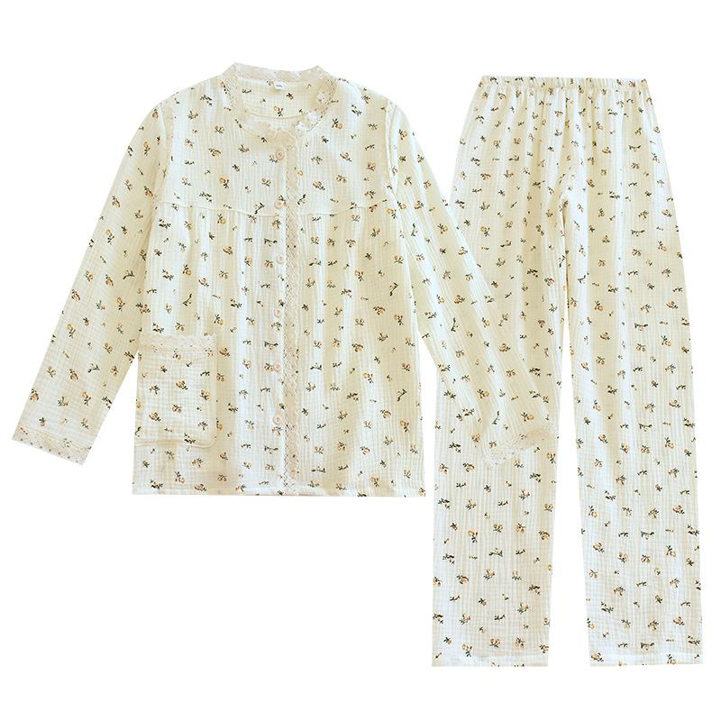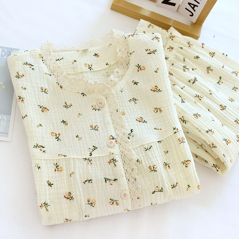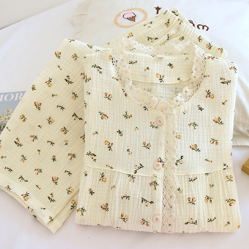 | nameOriginal | New Pajamas Women's Spring and Autumn Crepe Cotton Long-sleeved Trousers Suit Women's Sweet Summer Outer Wear Home Clothes |