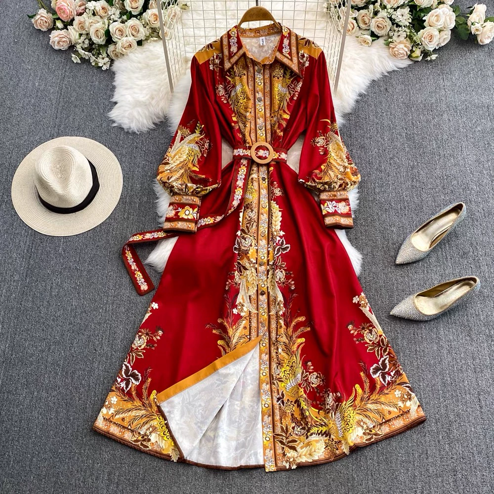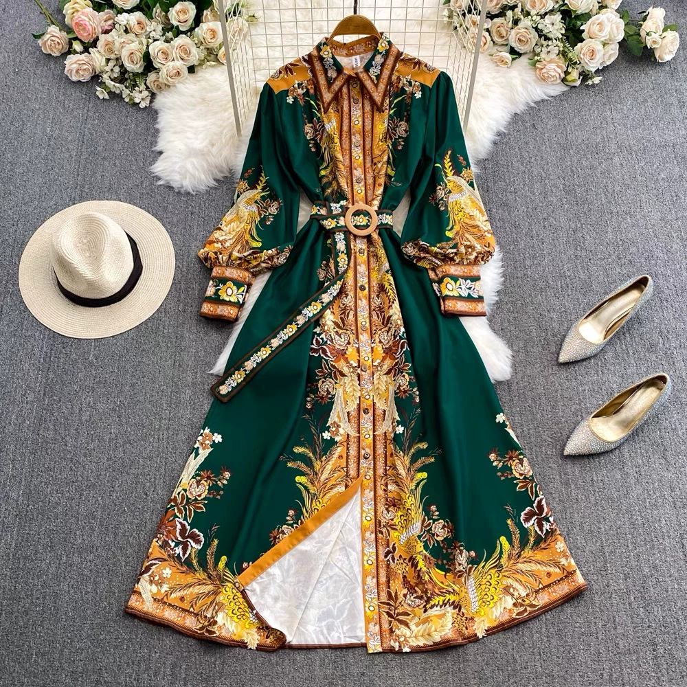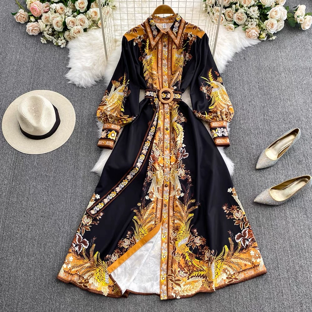 | nameOriginal | New palace-style retro printed long-sleeved waist-waisted long skirt fashionable single-breasted lapel dress LQ02 |