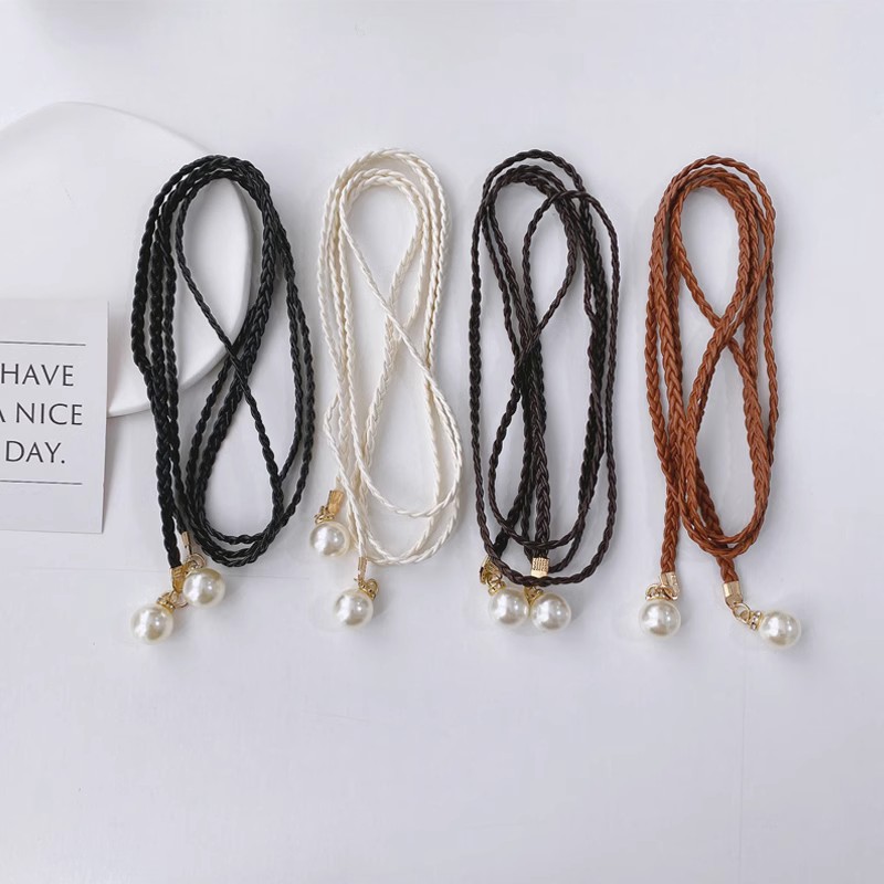 | nameOriginal | New Pearl thin narrow leather rope belt pants skirt decorative waist rope waist chain sweet fashion knotted waist seal for women |