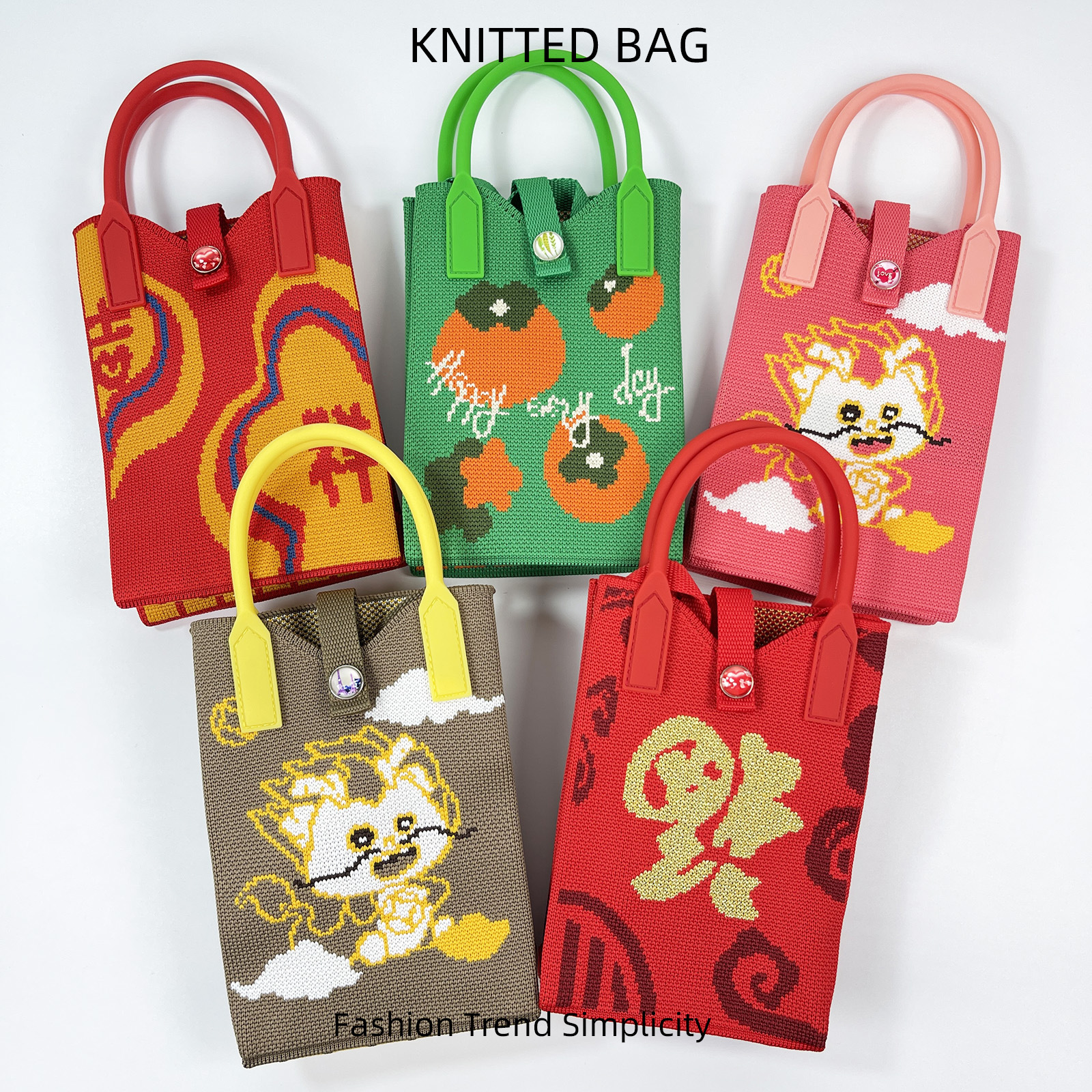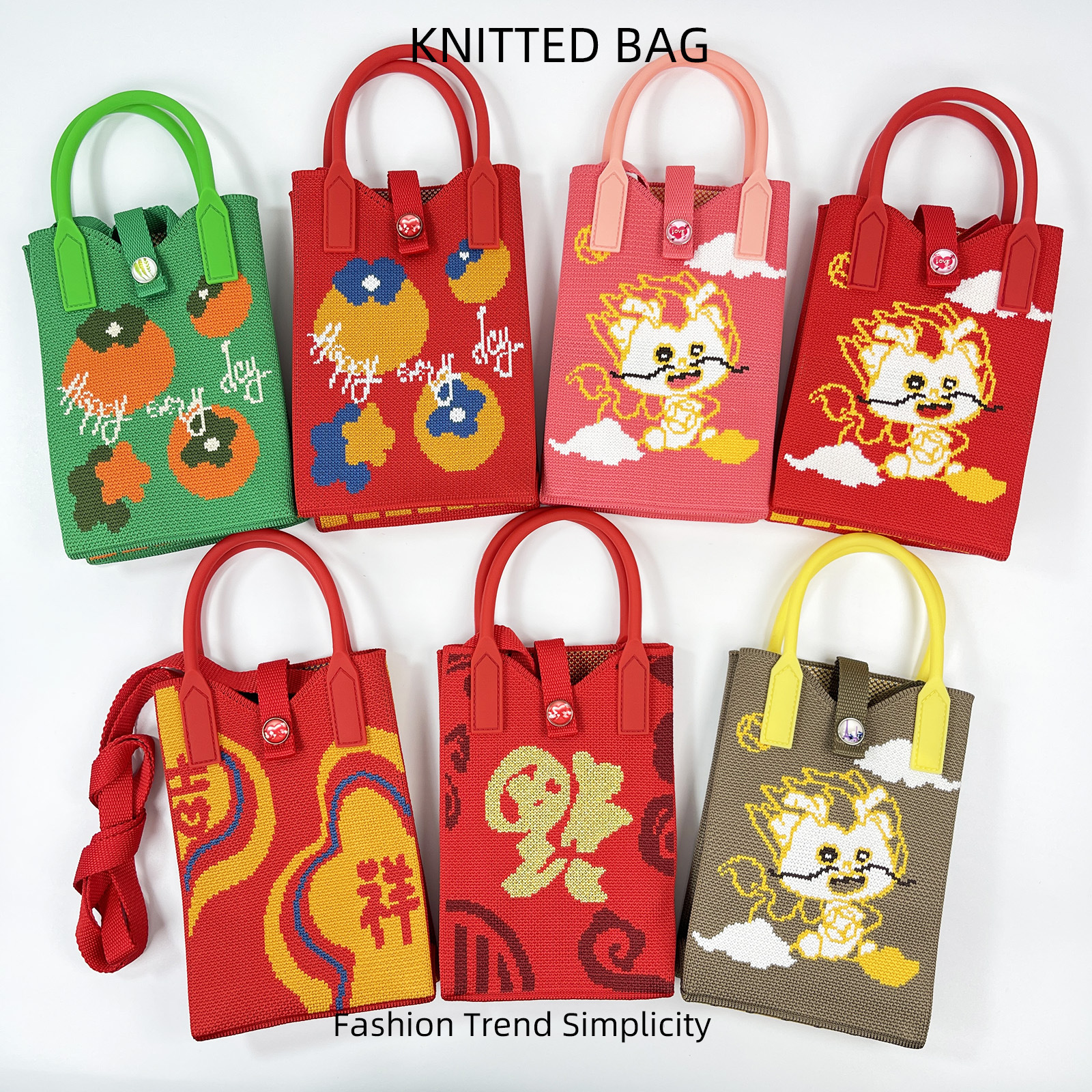 | nameOriginal | New Persimmon Happy Red Festive Cartoon Knitted Mobile Phone Bag Student Mini Crossbody Coin Purse Small Square Bag for Women |