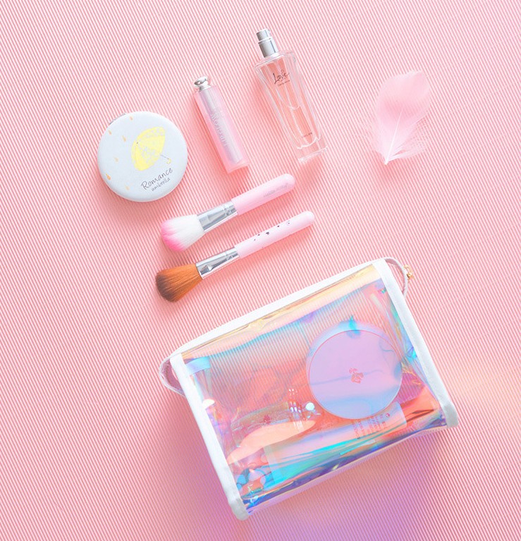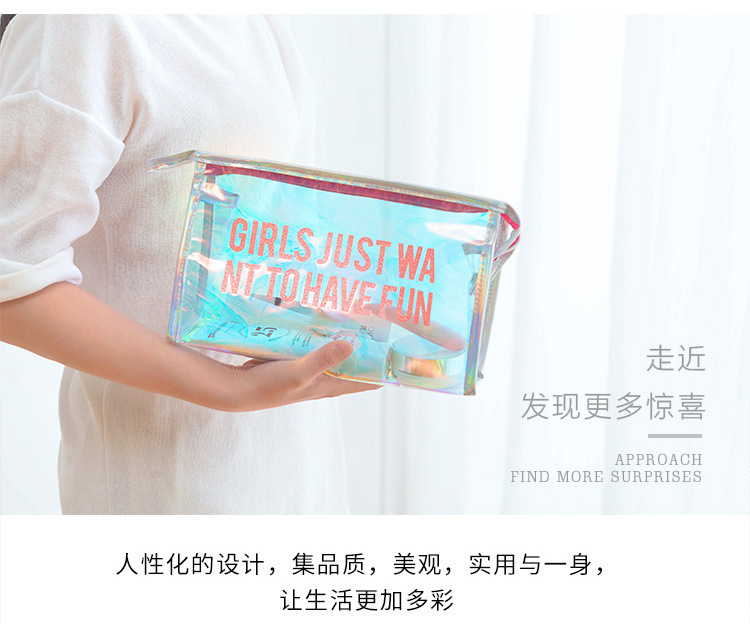 New PINKins Style Waterproof Laser TPU Transparent Travel Storage Bag Laser Cosmetic Bag Travel Wash Bag