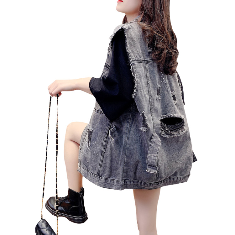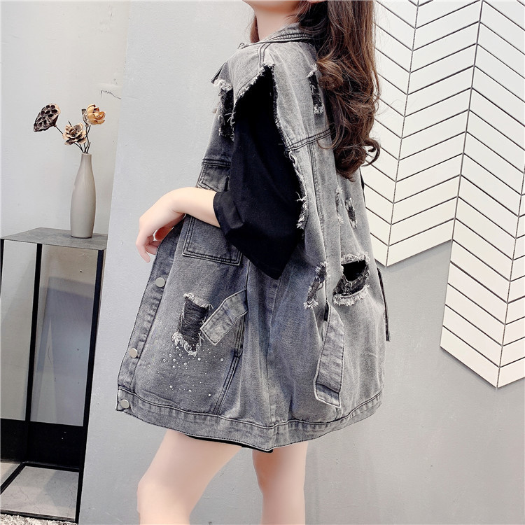 | nameOriginal | New plus size Denim Vest Women's Mid-length Foreign Trade Spring and Autumn Korean Style Loose Retro Casual Vest Sleeveless with Holes |