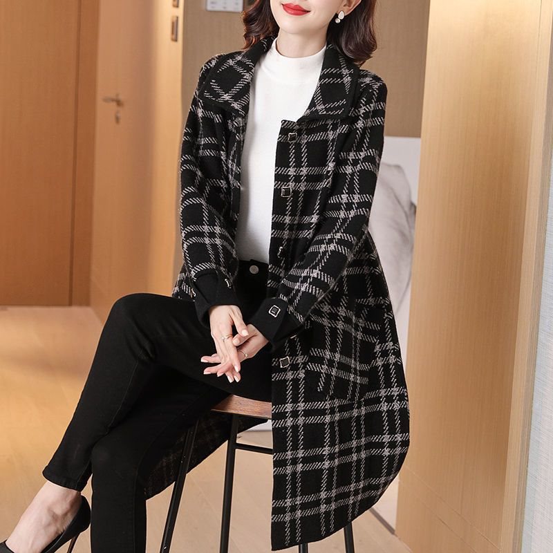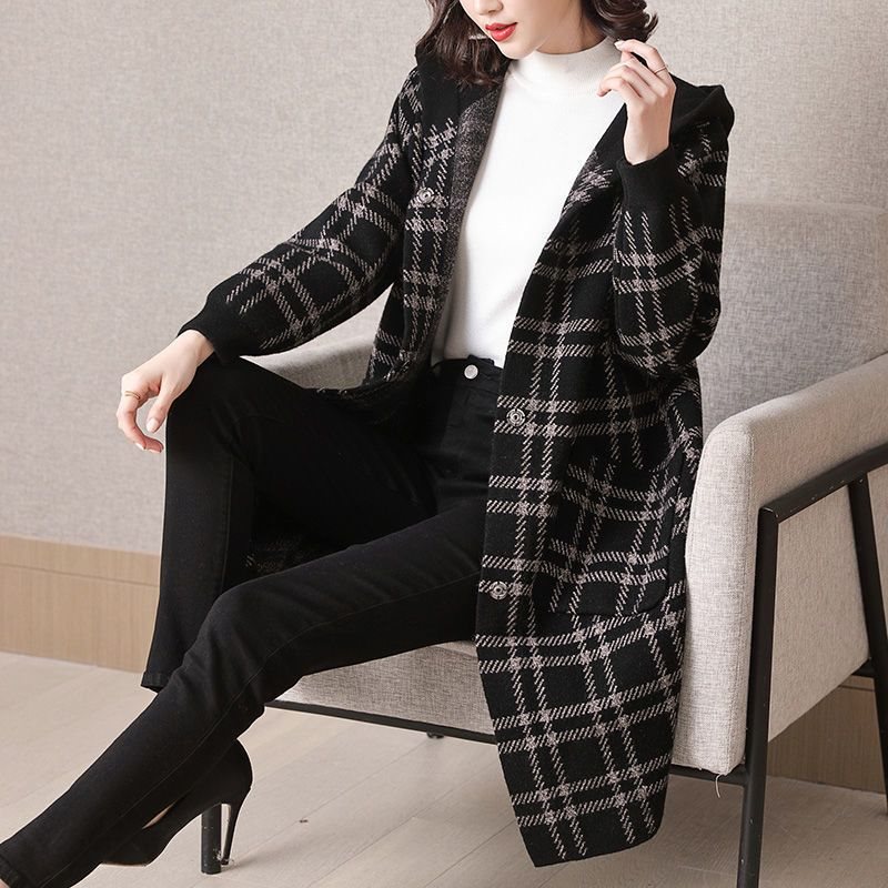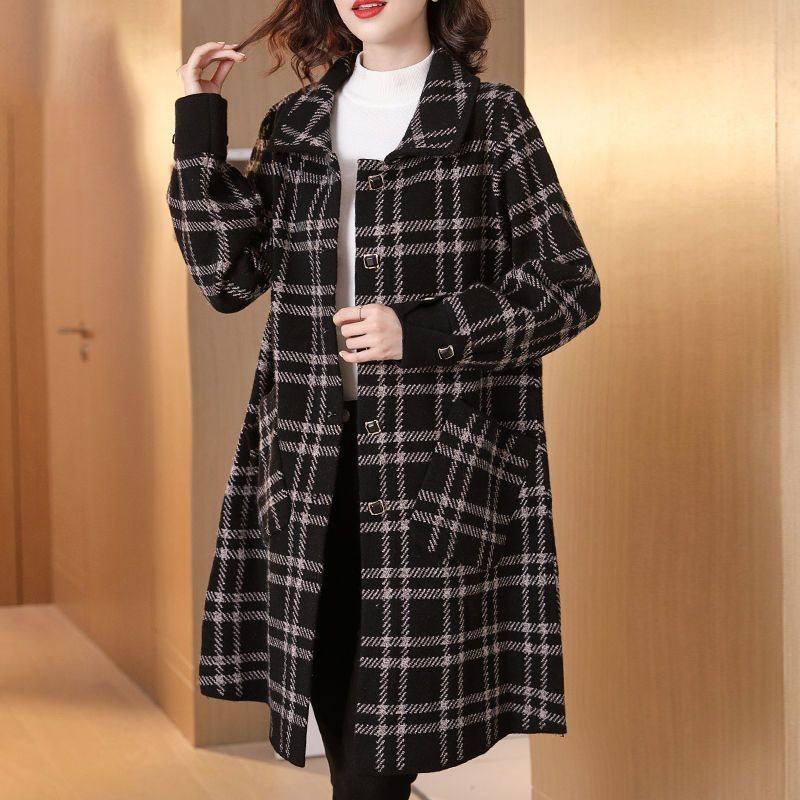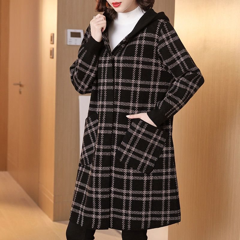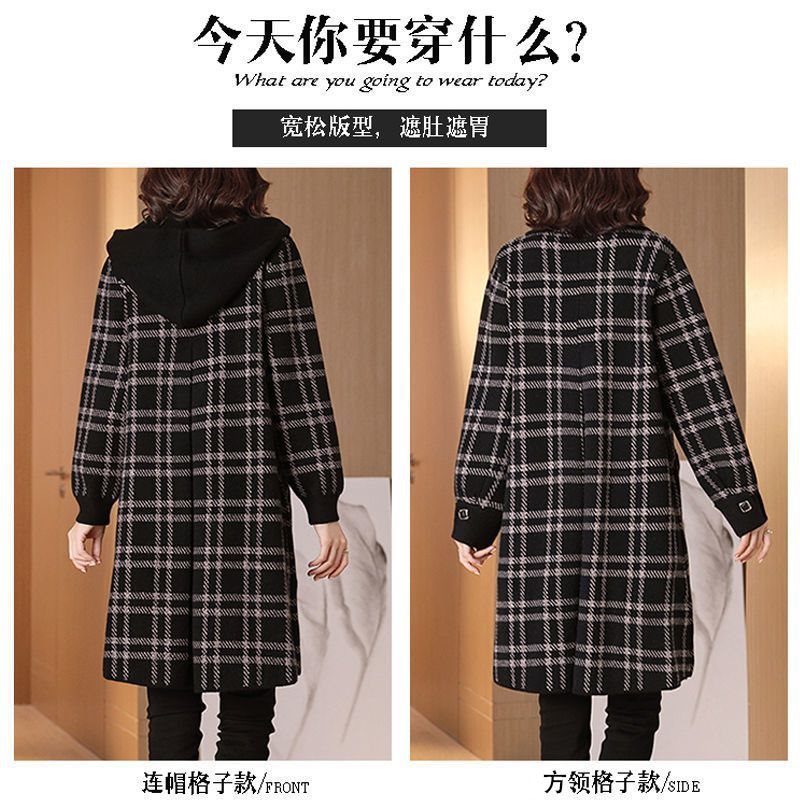 | nameOriginal | New plus size Knitted Cashmere Plaid Coat Women's Mid-length Loose Slimming Square Collar Hooded Coat Thick for Chubby Mother |