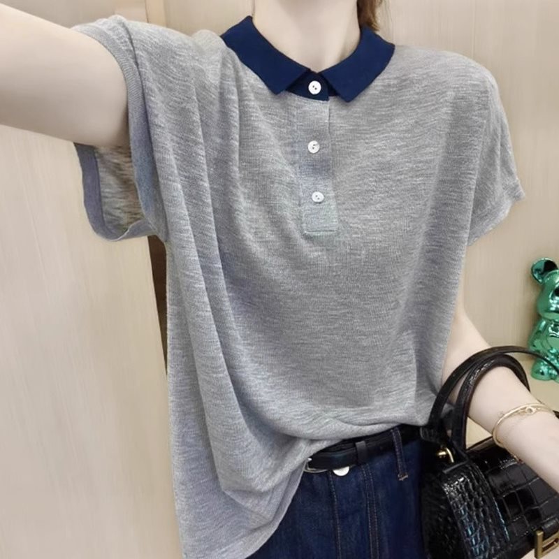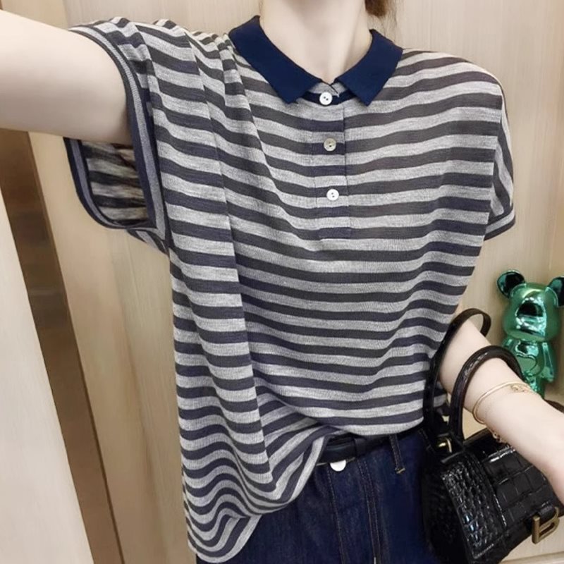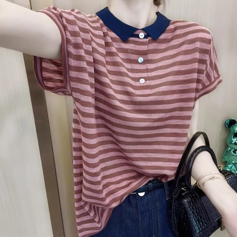 New Polo Shirt Short-sleeved Striped Top Design Sense T-shirt Western Style All-match Base Shirt Women’s Korean Style Age-reducing Casual