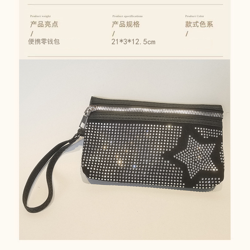 | nameOriginal | New portable cosmetic bag women's diamond-embedded storage bag Diamond-embedded five-pointed star coin purse mini portable clutch |