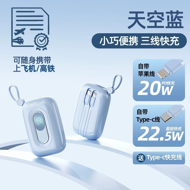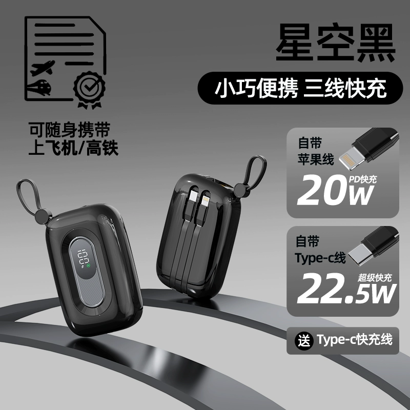 New charging treasure ultra -large capacity 20000 mAh line ultra -thin small small compact, portable, cute fast charging power supply suitable for Huawei Xiaomi Apple 15 mobile phone special authentic flagship store