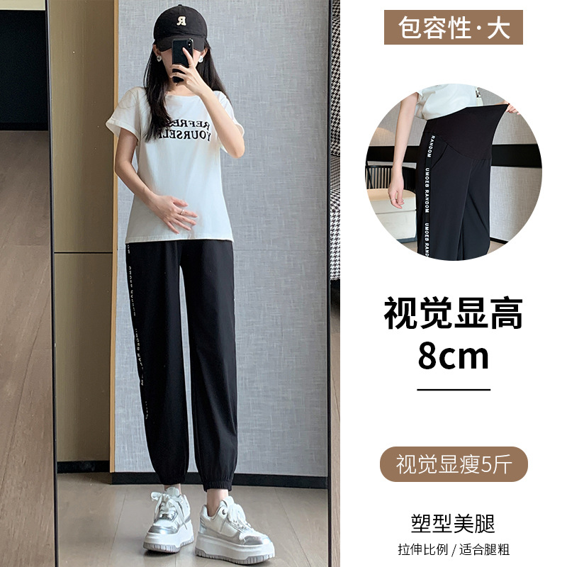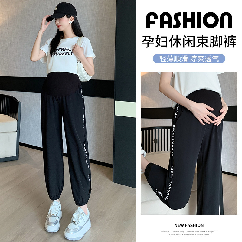 New pregnant women pants ice silk quick-drying pants summer thin plus size 200kg loose toe nine casual pants