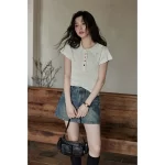 [New product 10% off] Summer French gentle style polo collar short-sleeved T-shirt tops for women
